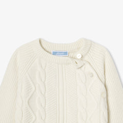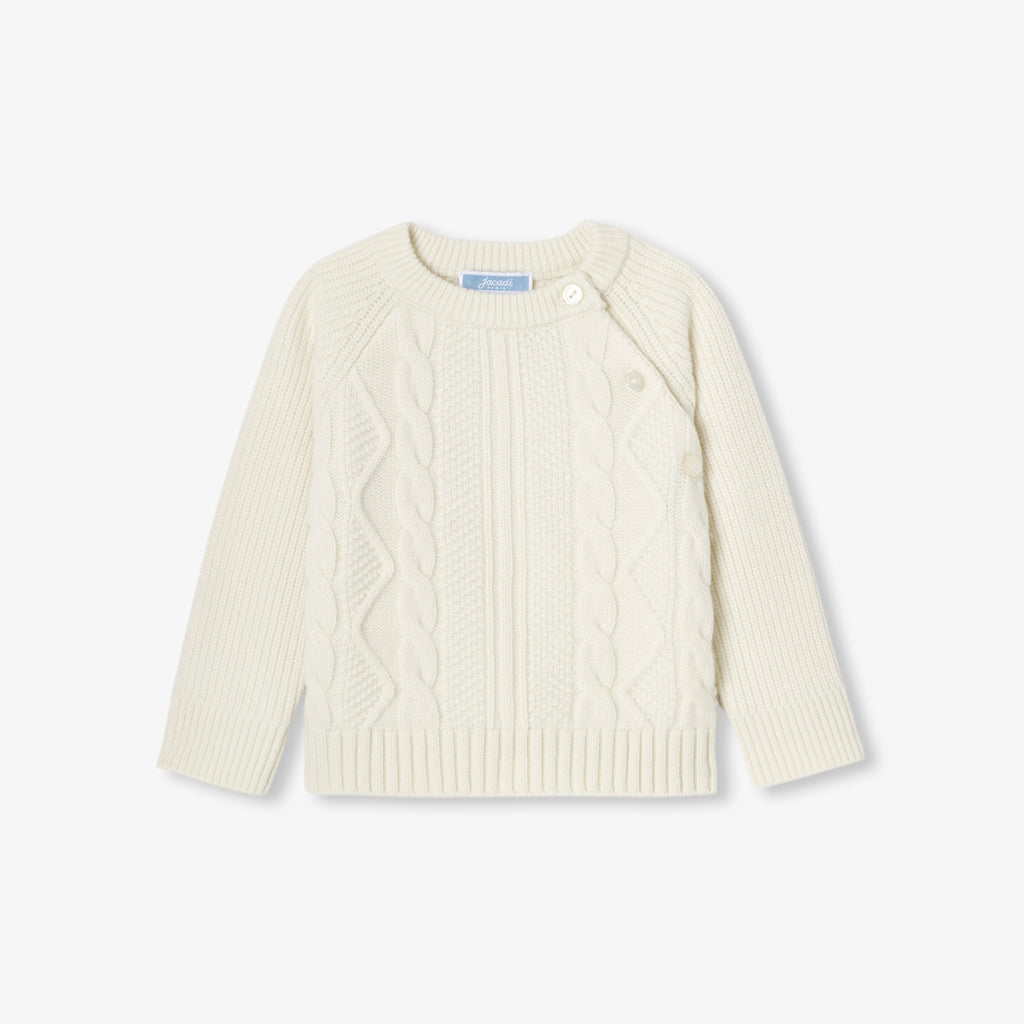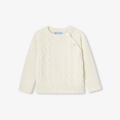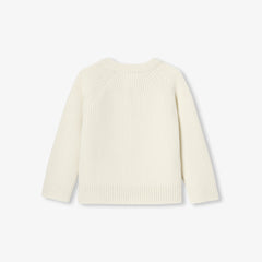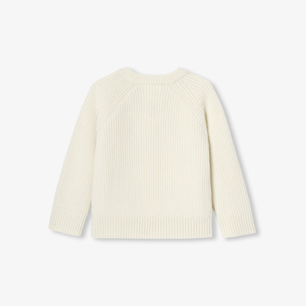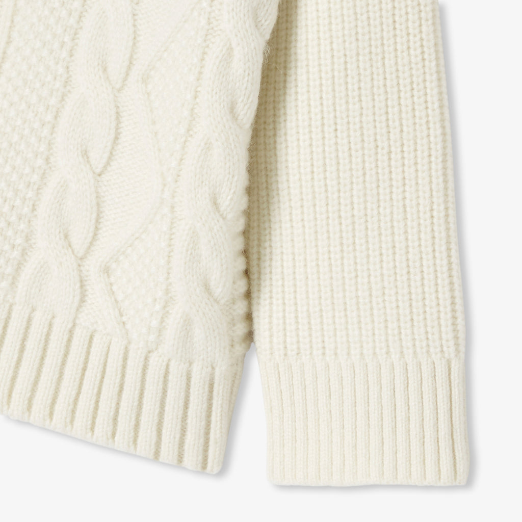 レスポンシブルウールとカシミヤを使用したセーター。シックなタータンチェックセーターにインスパイアされています。丸襟とラグランスリーブが特徴。手の込んだニットのオーセンティックな雰囲気と、ニュートラルカラーの純粋なエレガンスを兼ね備えています。どんなスタイルにもマッチする、暖かく快適なモデルです。ベロア調生地のパンツやジーンズに合わせて。