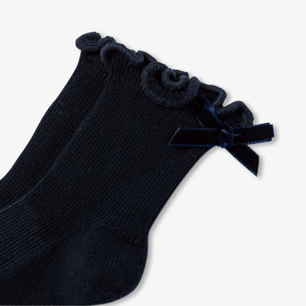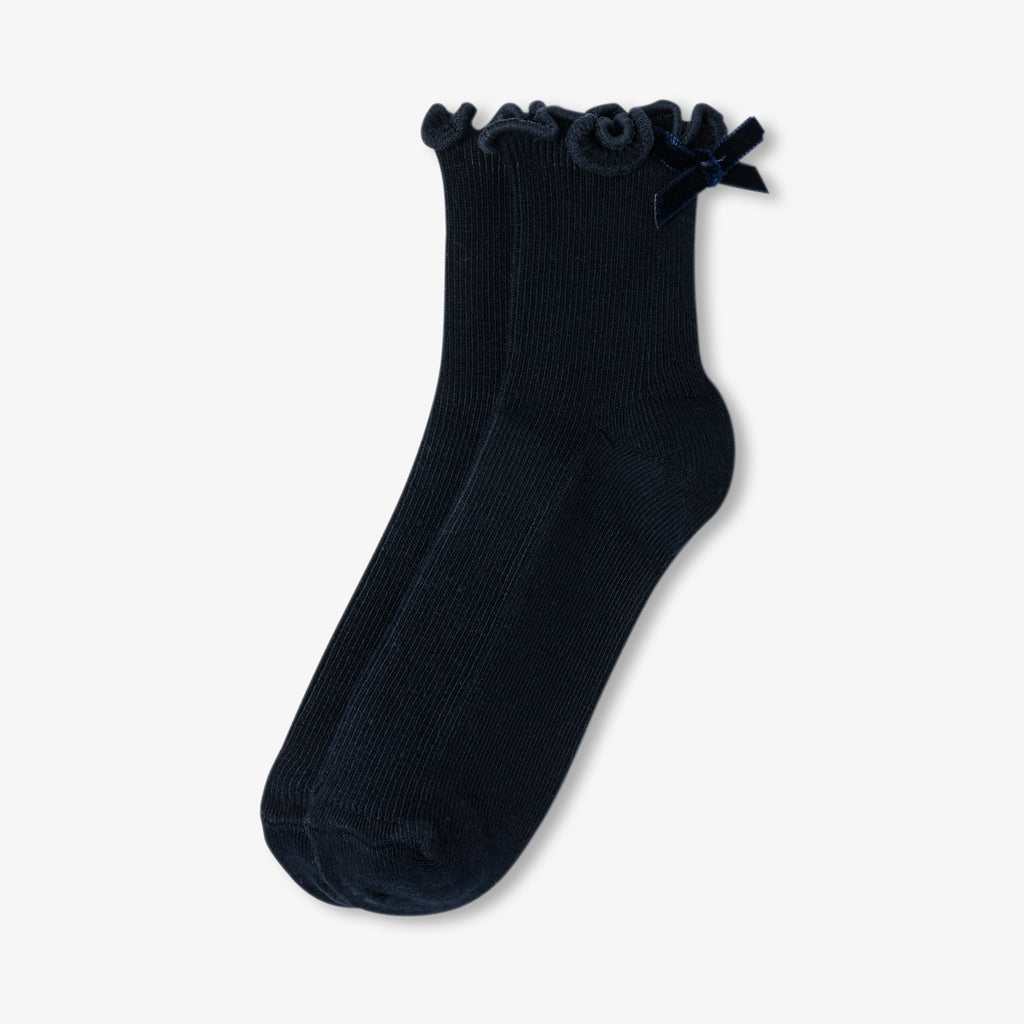 シックなディテールと洗練された仕上げがエレガントな、細かいリブ編みの靴下2足セット。足首の後ろにベロアリボンをあしらい、上部にブルトンステッチを施しました。ブーティやTバーシューズと合わせれば、どんな装いにもレトロな魅力を添えてくれます。