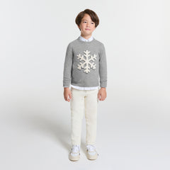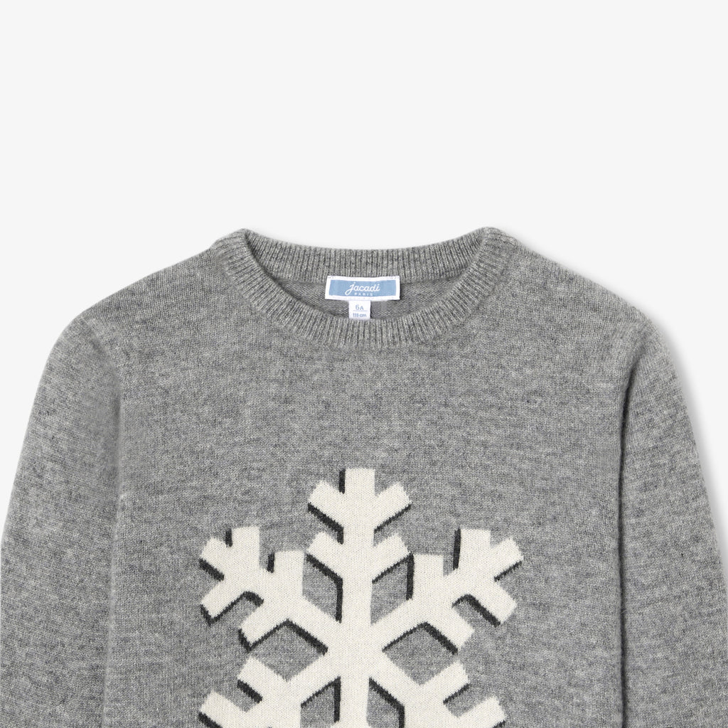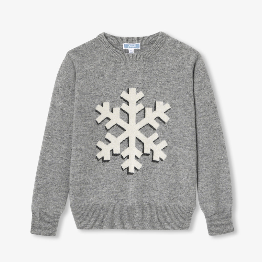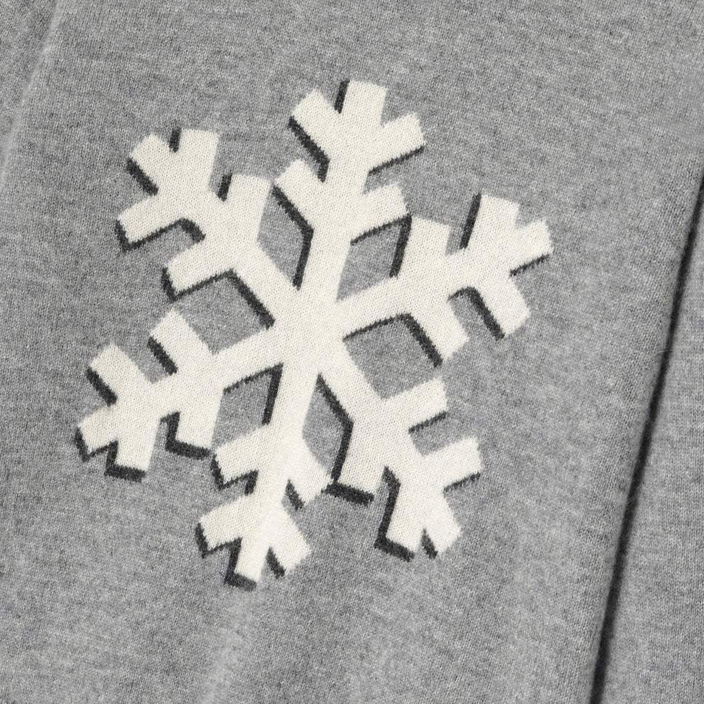 街でもスキー場でもぴったりの、暖かく包み込むようなカシミヤ素材がエレガントなセーター。大きめの雪の結晶のデザインは、きっとお子さまのお気に入りに。ジーンズにもフォーマルパンツにも合わせやすい、冬のワードローブの定番。年末のコーディネートにぴったりです。