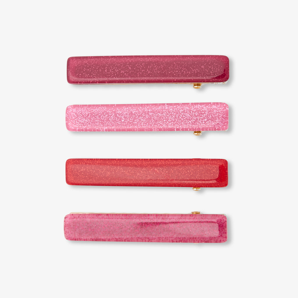 細い髪もしっかりと留めるヘアクリップセット。光沢のある樹脂製で、お洋服と合わせやすいカラーが揃っています。付け外しも簡単。季節や休日のヘアスタイルにさりげない輝きをプラスします。