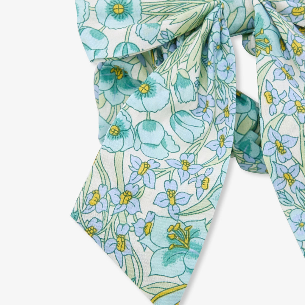 実用的でチャーミングなリバティプリント(花柄)のシュシュ。可愛らしいリボン付きです。ポニーテールやお団子に合わせれば、季節の装いにさりげない華やかさが生まれます。