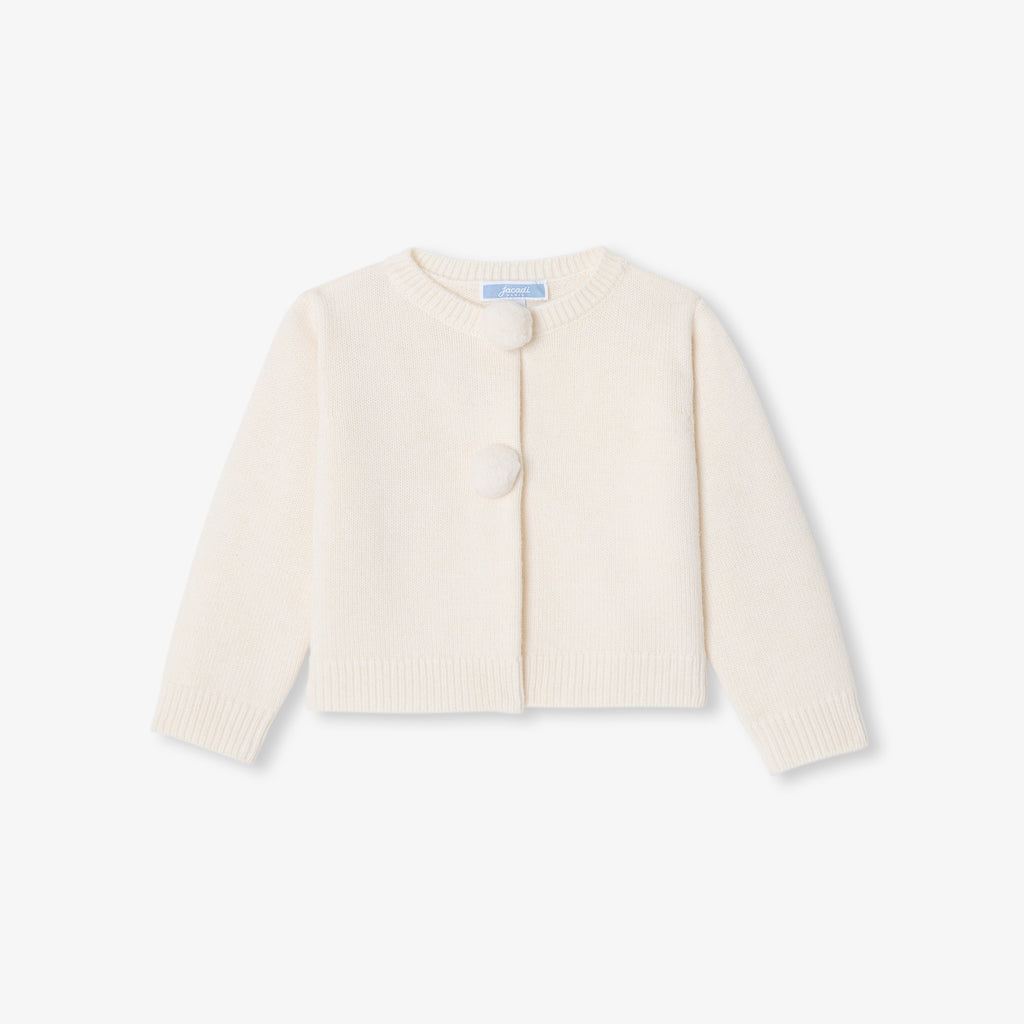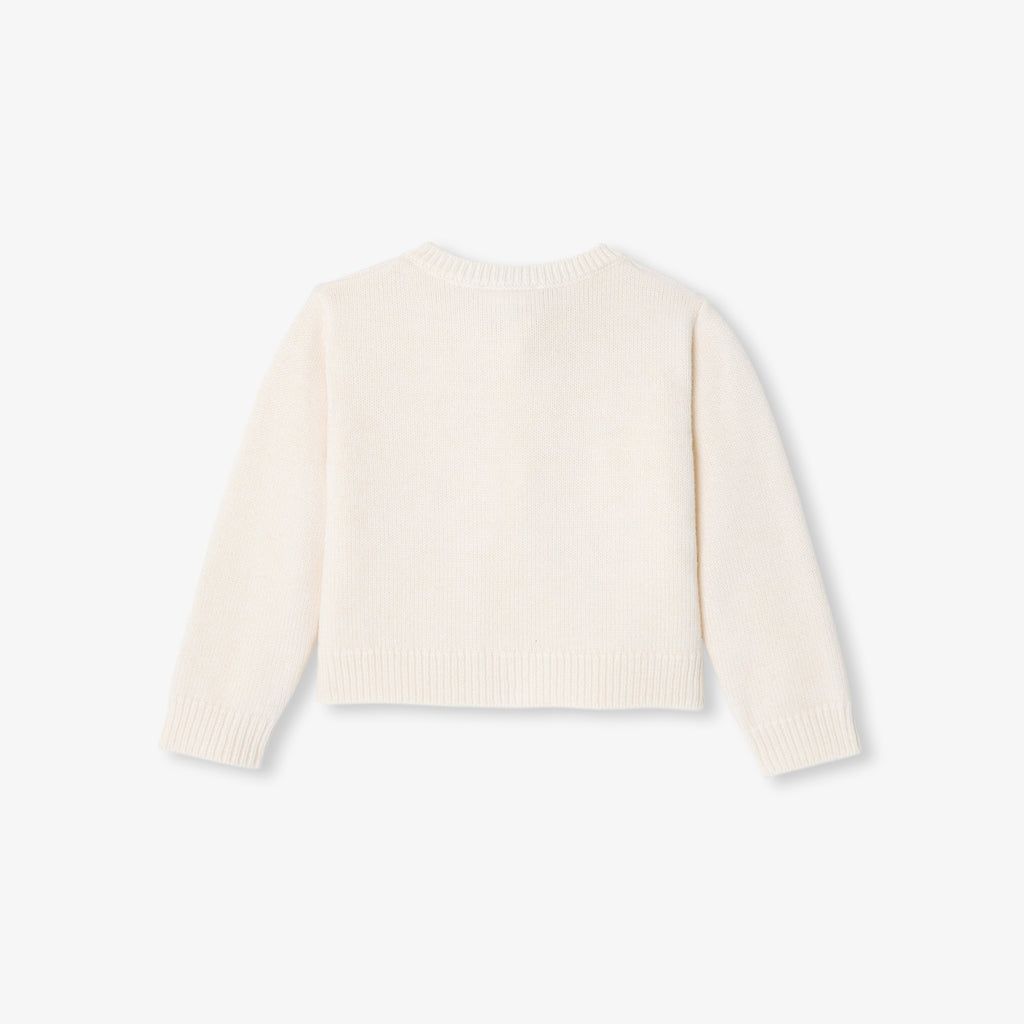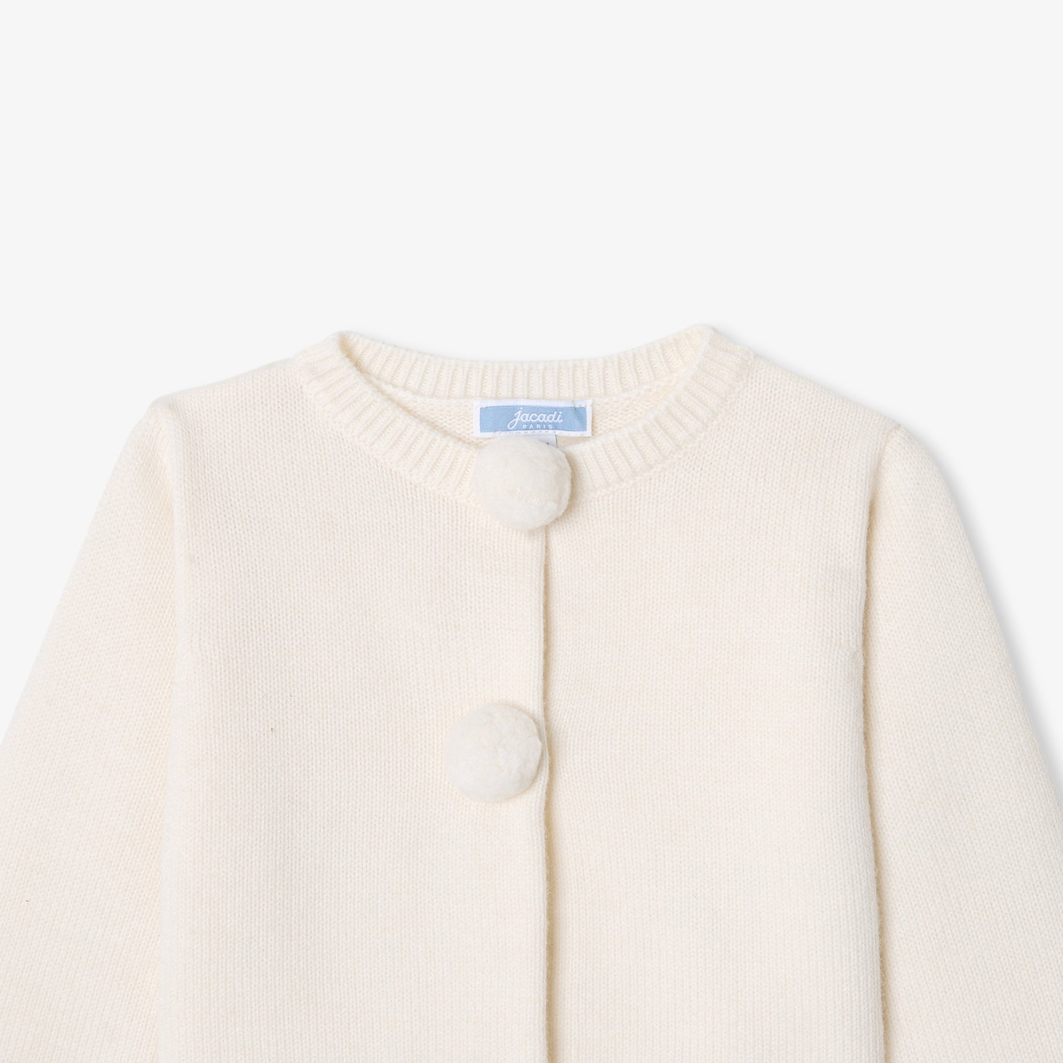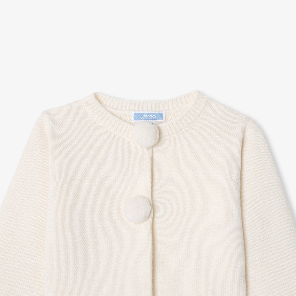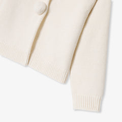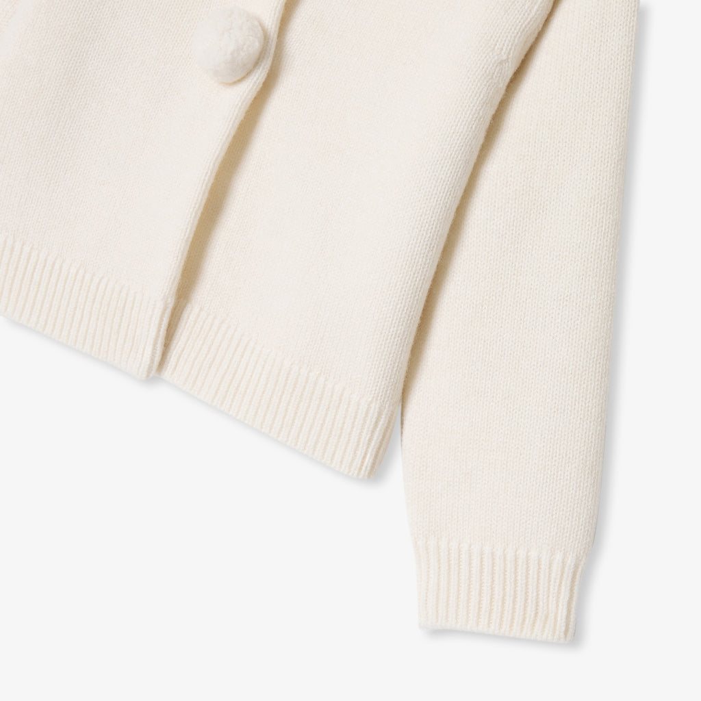 この冬は、同系色の小さなポンポンがアクセントになったオリジナリティあふれるカーディガンを。レスポンシブルウールとカシミヤを使用したこの一着を、フリル付きボディスーツやフランネルショートパンツと合わせれば、ホリデーシーズンにぴったりなシックで居心地の良いシルエットに。