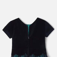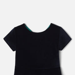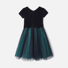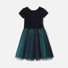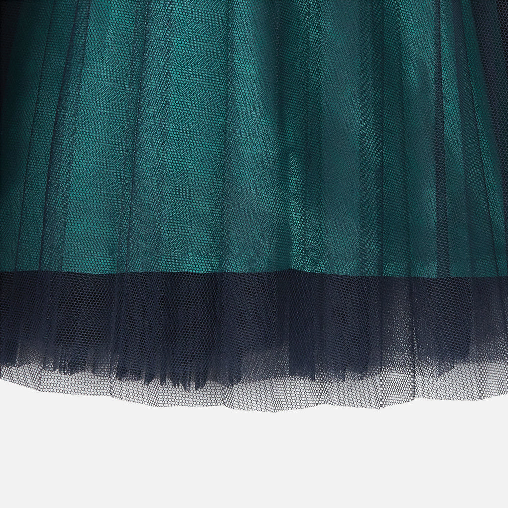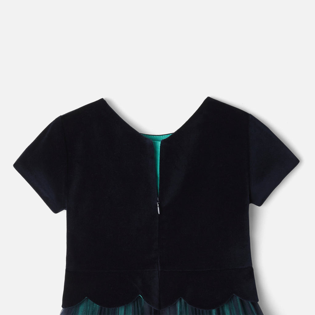 特別な日が増える季節に重宝する、美しいロングワンピース。シックでモダンなベロア調生地のトップ、絶妙なツートンカラーのプリーツチュールのスカートが特徴。魅力的なクチュール風の一着で、エナメルのバレエシューズとネイビーのカーディガンを合わせれば、ホリデーシーズンにぴったりの装いが完成します。