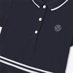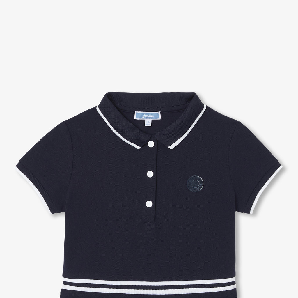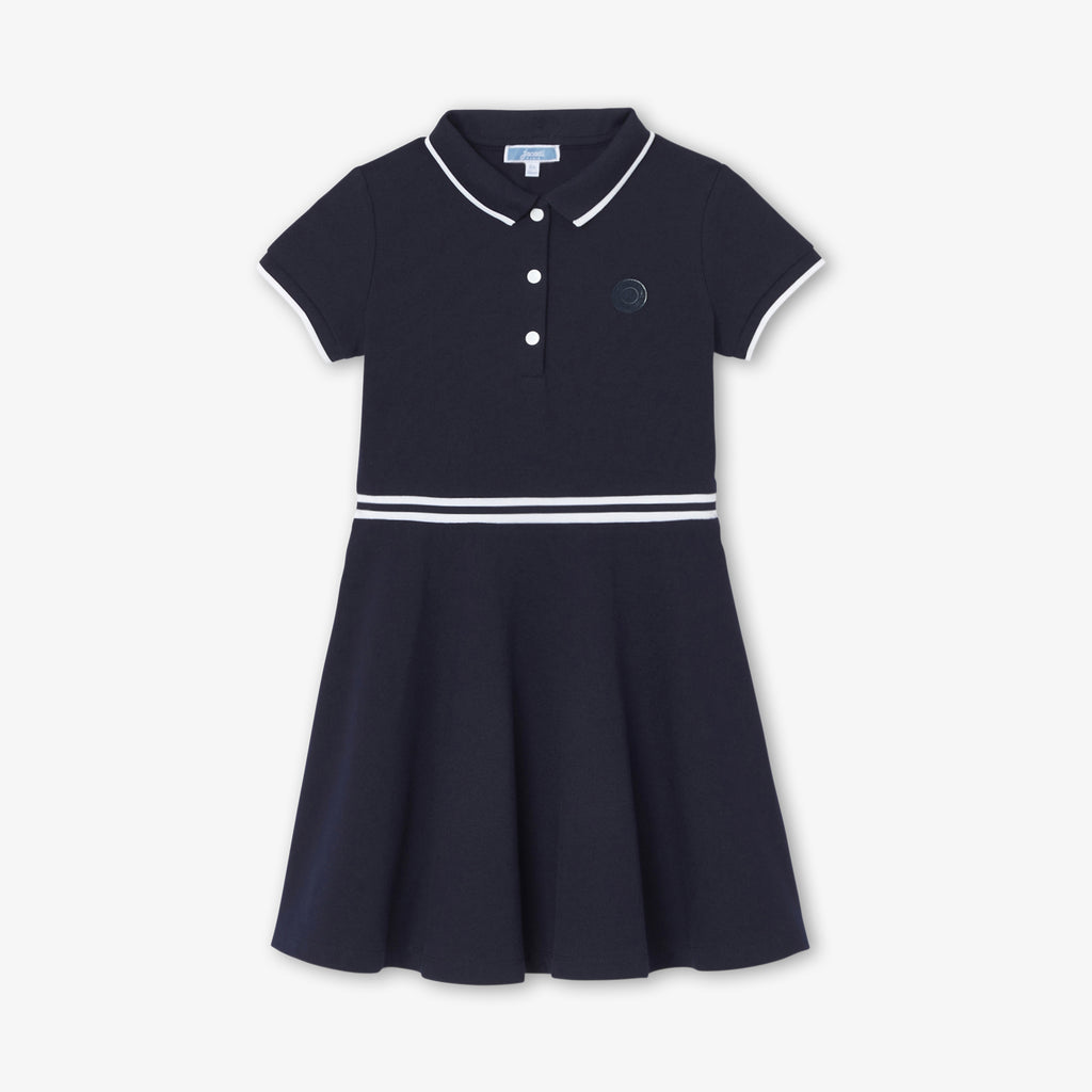 季節をエレガントに彩る、テニスドレスにインスパイアされたピケニットの半袖ワンピース。ポロ襟とコントラストの効いたディテールが特徴的。無地でもカラーブロックでもスニーカーやサンダルと合わせるのがおすすめ。通園・通学にもぴったりです。