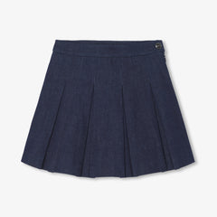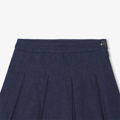クラシカルなローキャンバス生地のプリーツスカートを春向けにリデザイン。プレッピーシックで印象的な一枚で、フリル袖のTシャツとテディジャケット風カーディガンと合わせるのがおすすめ。