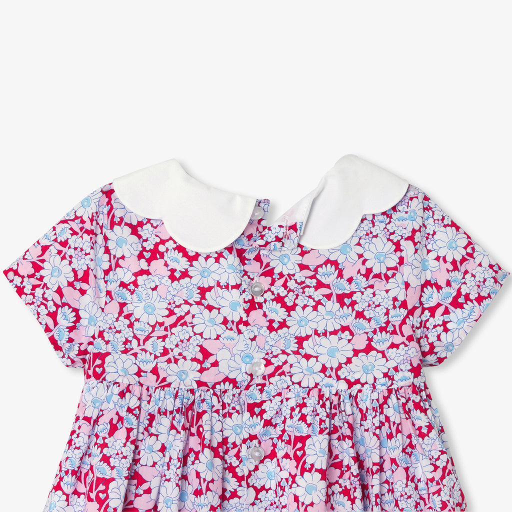 リバティプリント(花柄)に、繊細なディテールが映えるエレガントなワンピース。