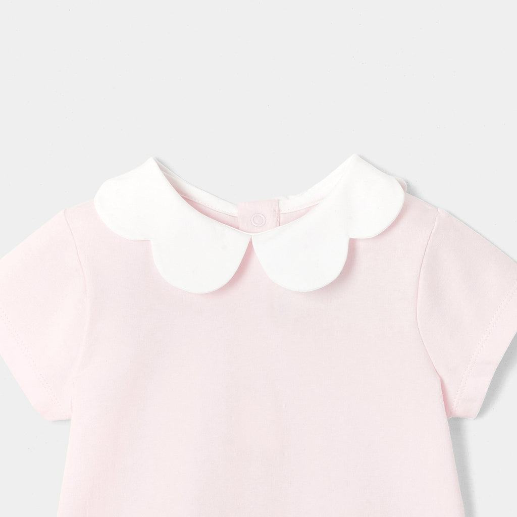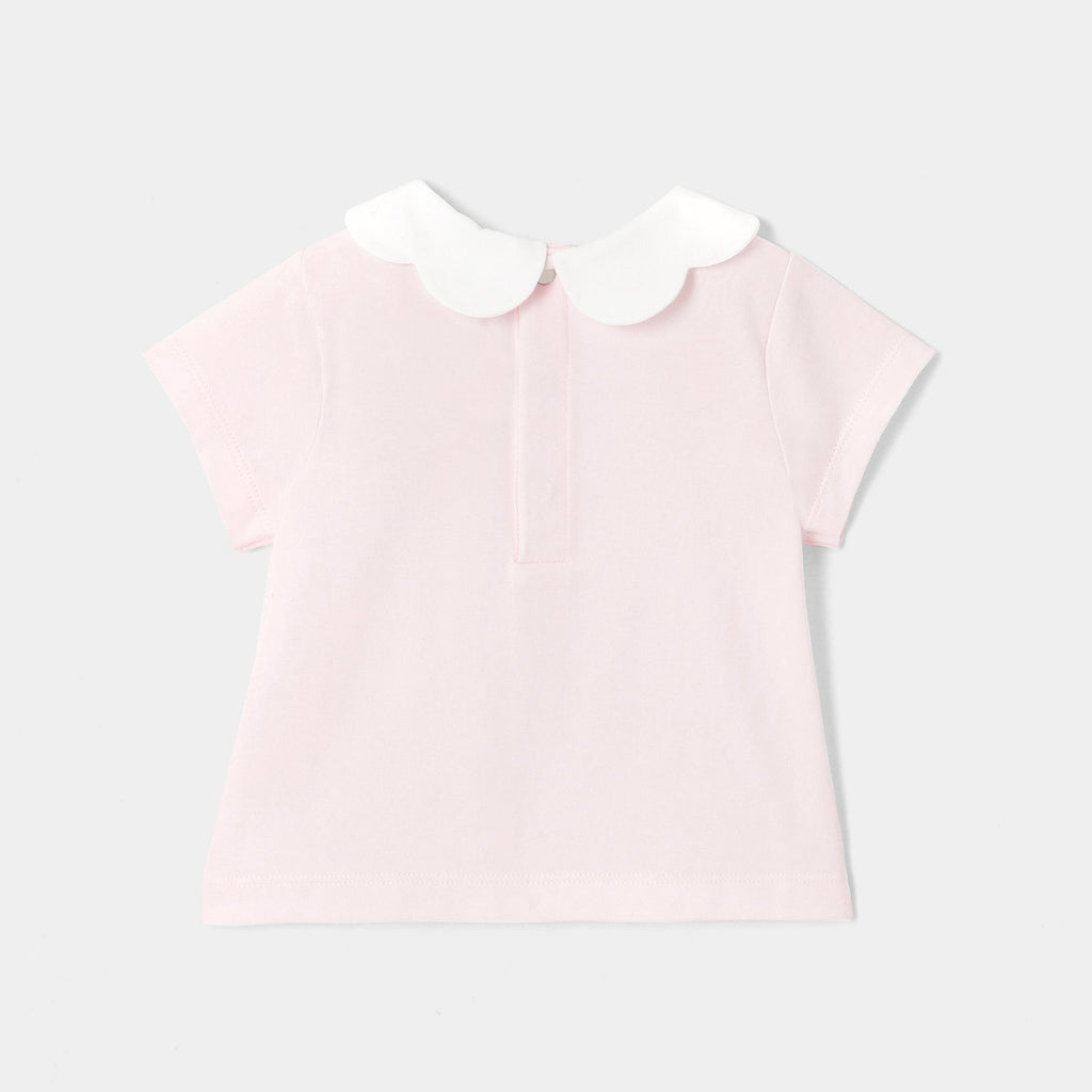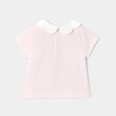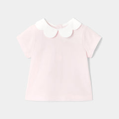 ジャカディのワードローブの定番、エレガントなスカラップのポプリン襟が特徴の半袖Tシャツ。着心地の良いオーガニックコットンを使用し、毎日のコーディネートにぴったりです。