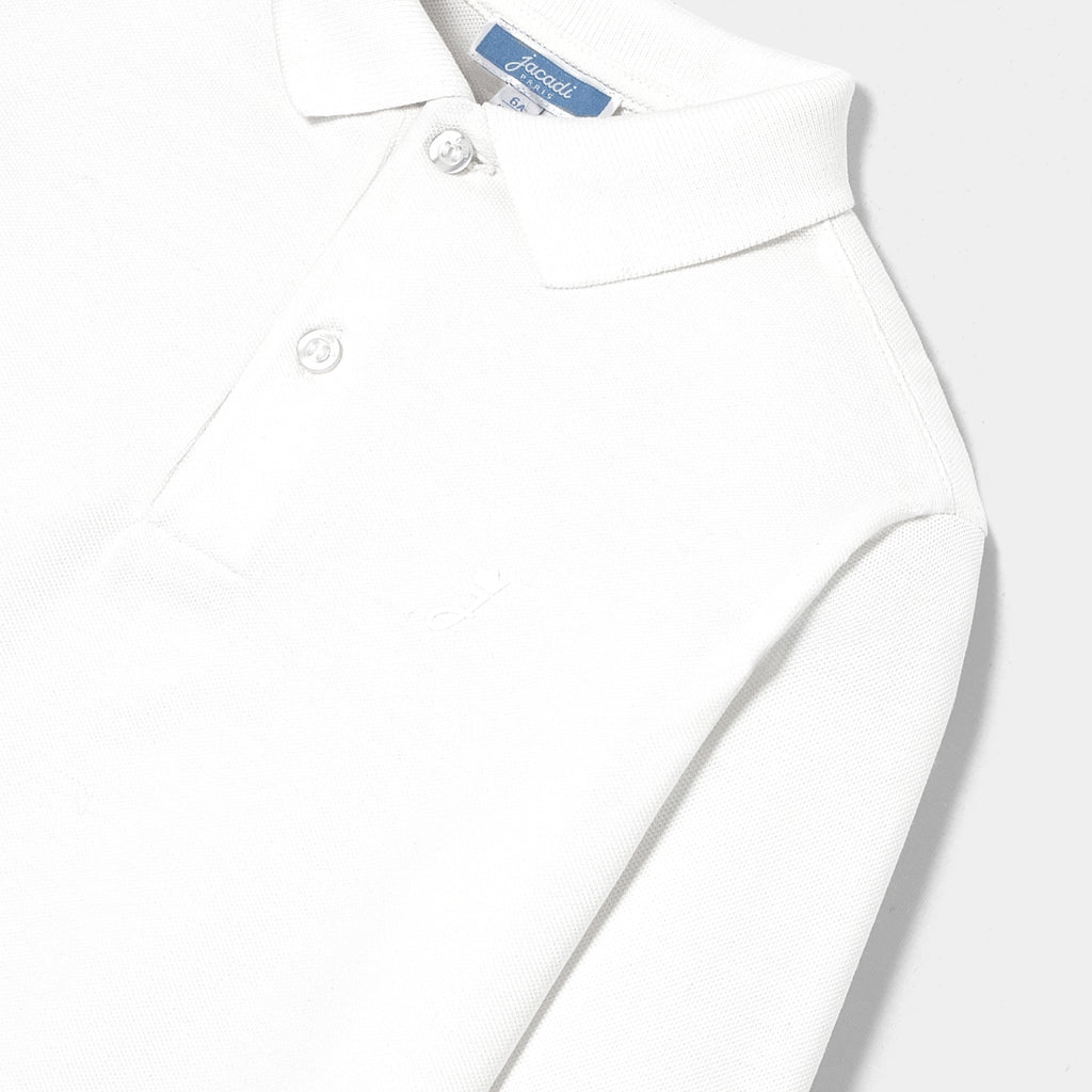 通学にぴったりなオーガニックコットンの長袖ポロシャツ。ワードローブの定番アイテムです。無地に控えめなワンポイントデザインで合わせやすく、スウェットパンツやジーンズと合わせてデイリーユースとしても着用できます。