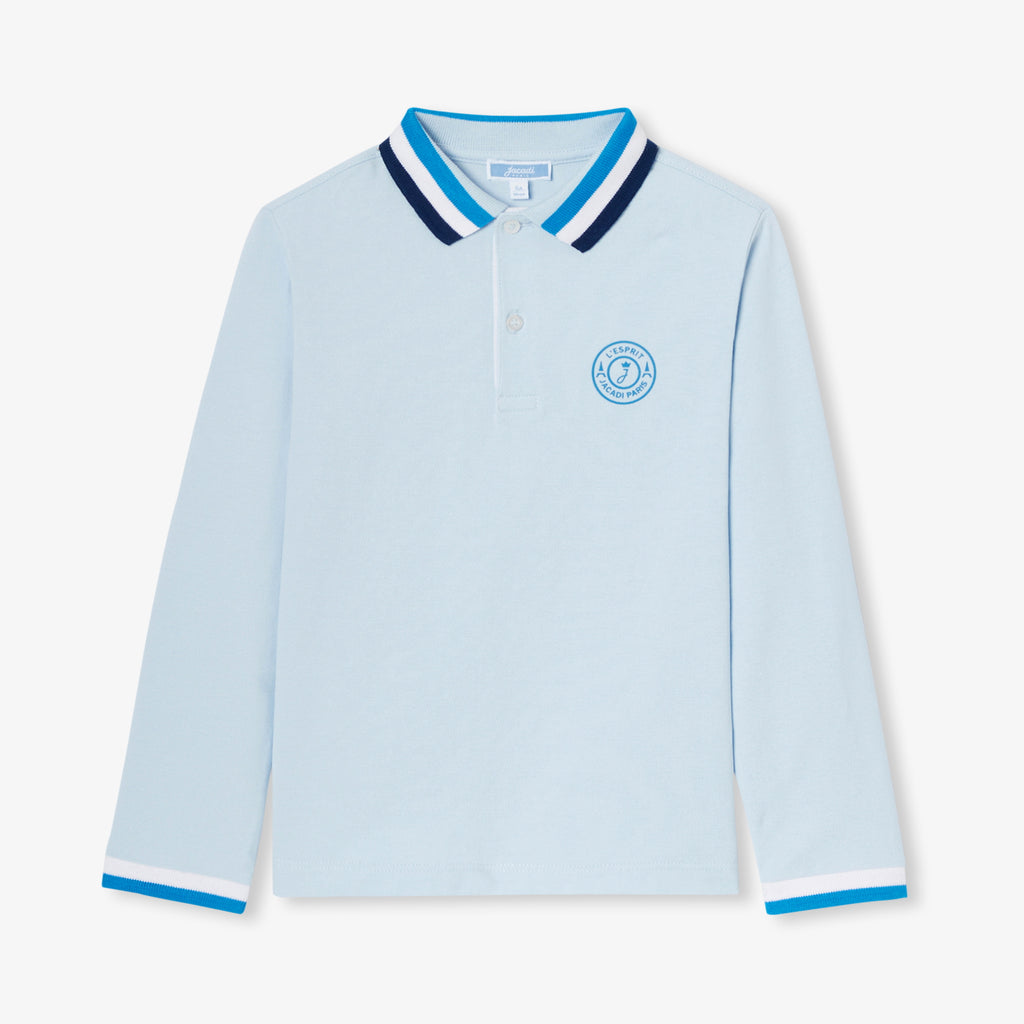 毎日のワードローブに欠かせない長袖ポロシャツが、さらにエレガントになって登場。柔らかく着心地の良いコットンピケを使用。襟と袖口にはストライプのリブをあしらい、通園・通学にぴったりの一着です。どの色もお子さまのお気に入りになること間違いなしです。ジーンズやスウェットパンツに合わせて。