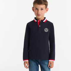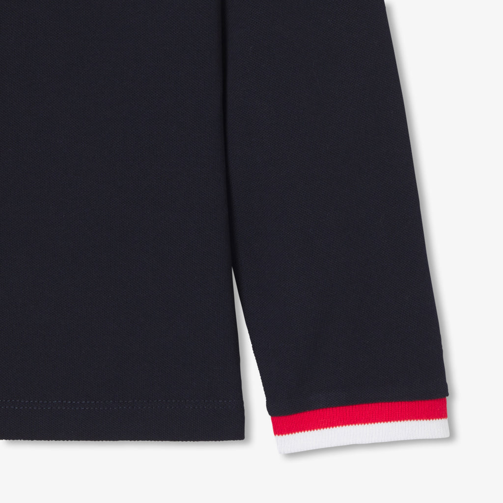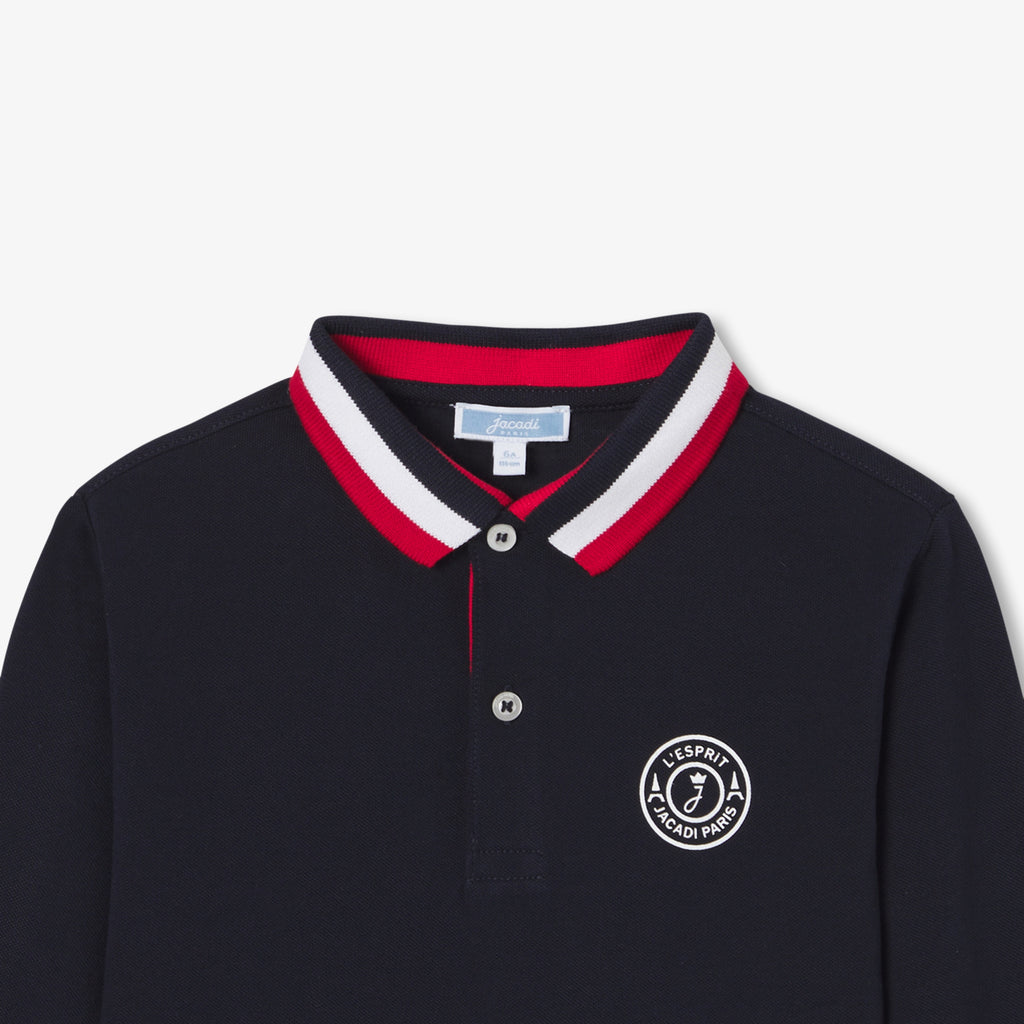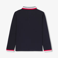 毎日のワードローブに欠かせない長袖ポロシャツが、さらにエレガントになって登場。柔らかく着心地の良いコットンピケを使用。襟と袖口にはストライプのリブをあしらい、通園・通学にぴったりの一着です。どの色もお子さまのお気に入りになること間違いなしです。ジーンズやスウェットパンツに合わせて。