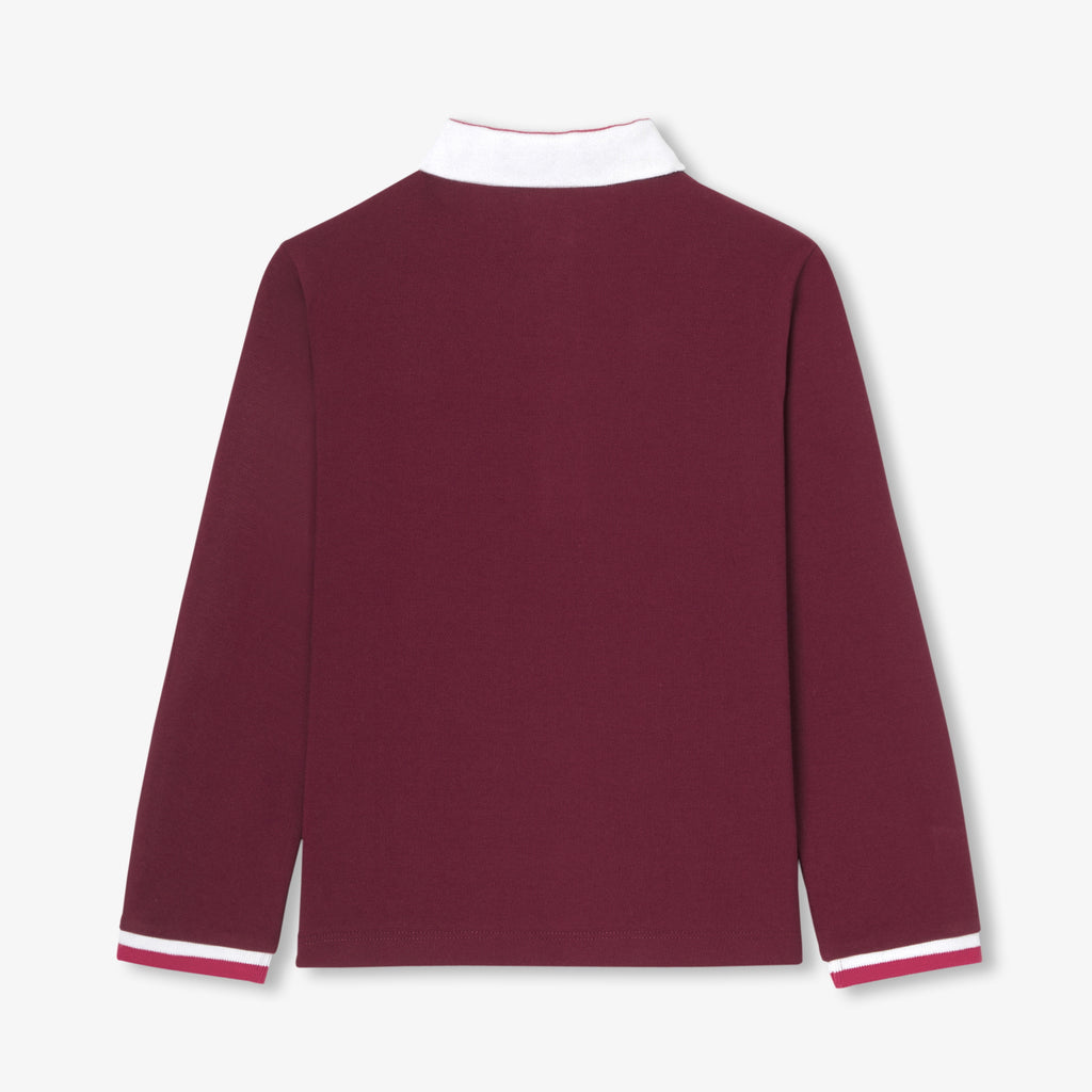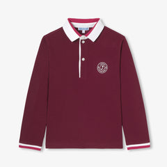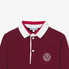 英国スクールスタイルのラガーポロシャツ。デイリーウェアの定番です。柔らかくしなやかなコットンピケを使用。大胆な色使いのストライプのリブ襟と袖口は、ジーンズやスウェットパンツにぴったり。通園・通学にも、お休みの日にも使えるマストアイテム。
