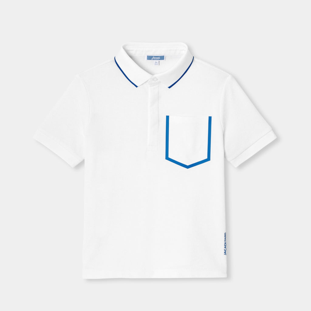 パッチポケットとコントラストの効いた仕上げがモダンなポロシャツ。ワードローブの定番です。目立ちにくいボタン式プラケットがスポーティーシックなこのコットンピケのモデルです。夏の終わりにはバミューダショートパンツに、新学期にはツイルパンツに合わせて。