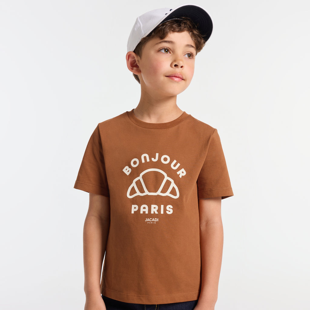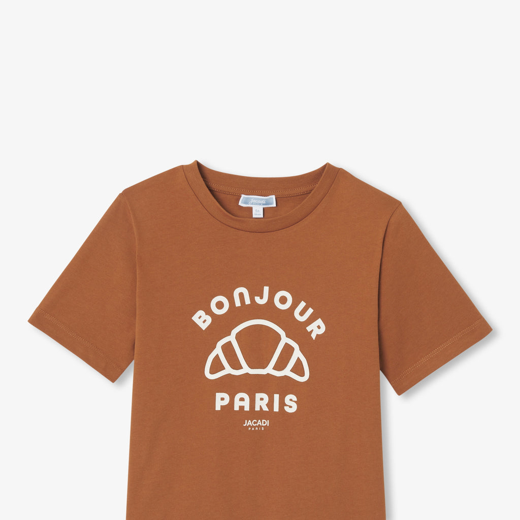 朝食やおやつの時間に大活躍の定番Tシャツ。エンボス加工された本場クロワッサン柄が、グルメな気分を演出します。柔らかくしなやかなコットンを使用した、パリ風のチャーミングな一着です。新学期には、ショートパンツやツイルパンツに合わせて。