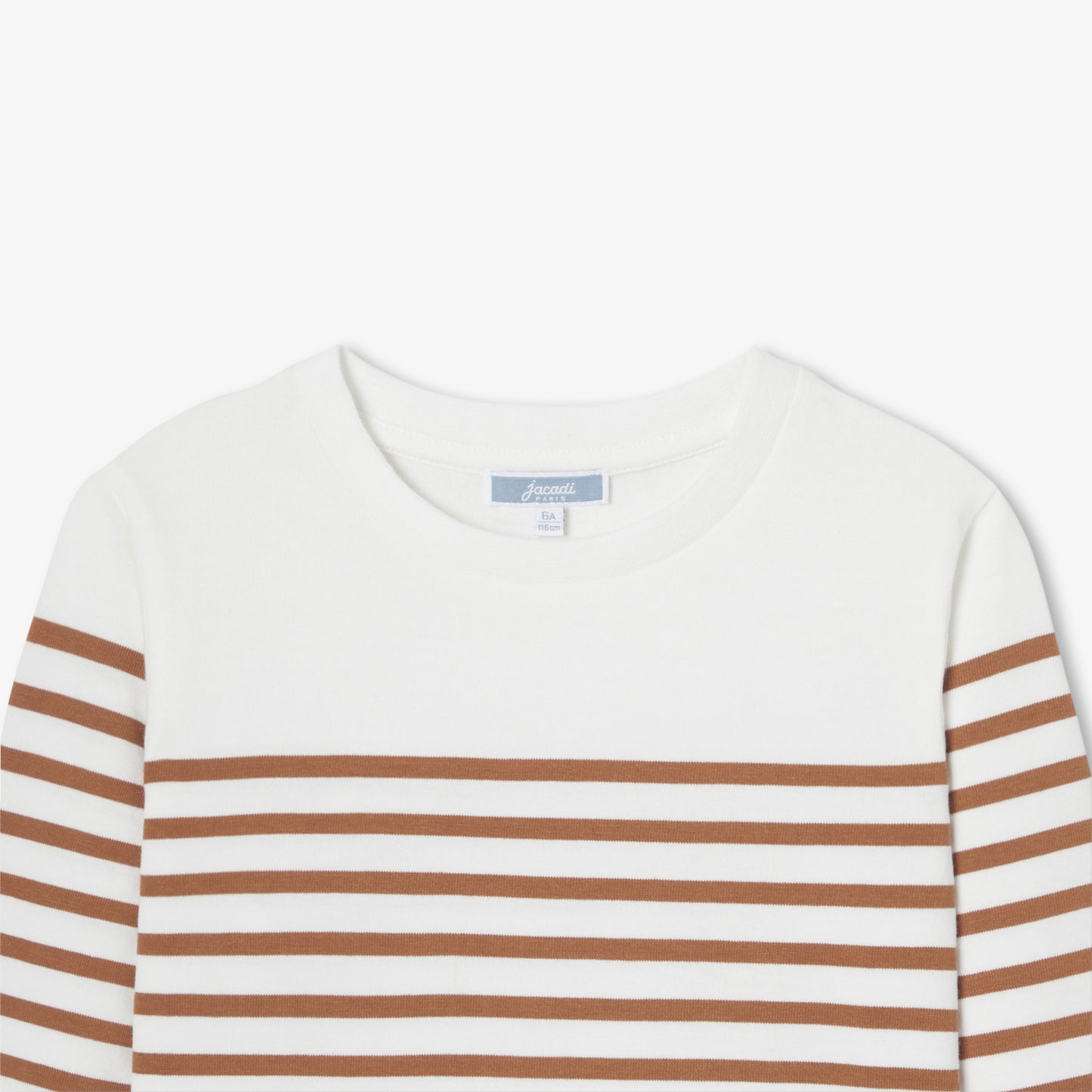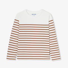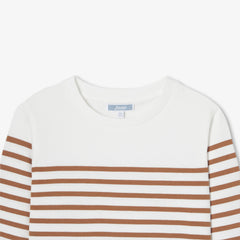 フランスのワードローブの定番アイテム、セーラーストライプシャツ。今シーズンはモダンにリデザインしました。厚手の起毛ジャージー素材は、快適で暖かな着心地。ブラウンカラーを折り返しジーンズとスニーカーに合わせれば、シックなパリ風カジュアルのシルエットに。