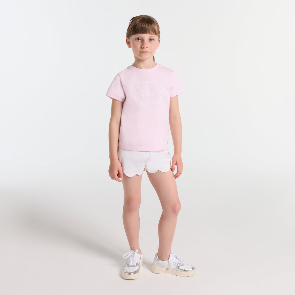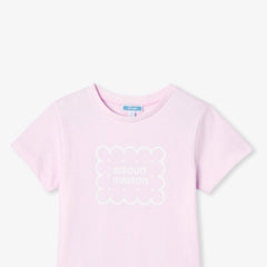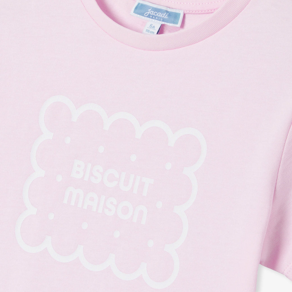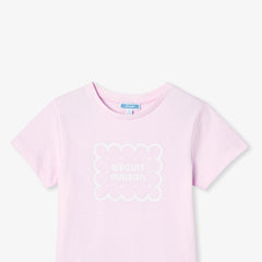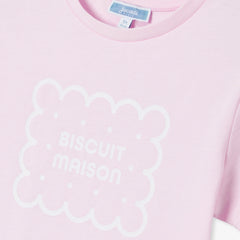 ベーシックな半袖Tシャツが、今シーズンは優しく楽しいデザインで登場。クッキー柄の遊び心と、パステルカラーが魅力あふれる一着です。キュロットスカートやワイドパンツと合わせれば、この秋、存在感を放つこと間違いなし。