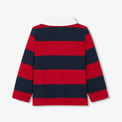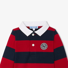 ワードローブに欠かせないオーガニックコットンの長袖ポロシャツ。ツートンカラーのストライプとコントラストの効いたホワイトのオックスフォードカラー(襟)がラガースタイル風。胸にはジャカディの刺繍バッジがあしらわれています。クラシカルで快適なカッティングはジーンズやチノとも好相性。スポーティーシックな一着です。