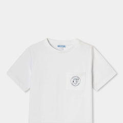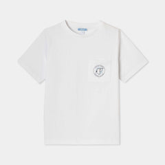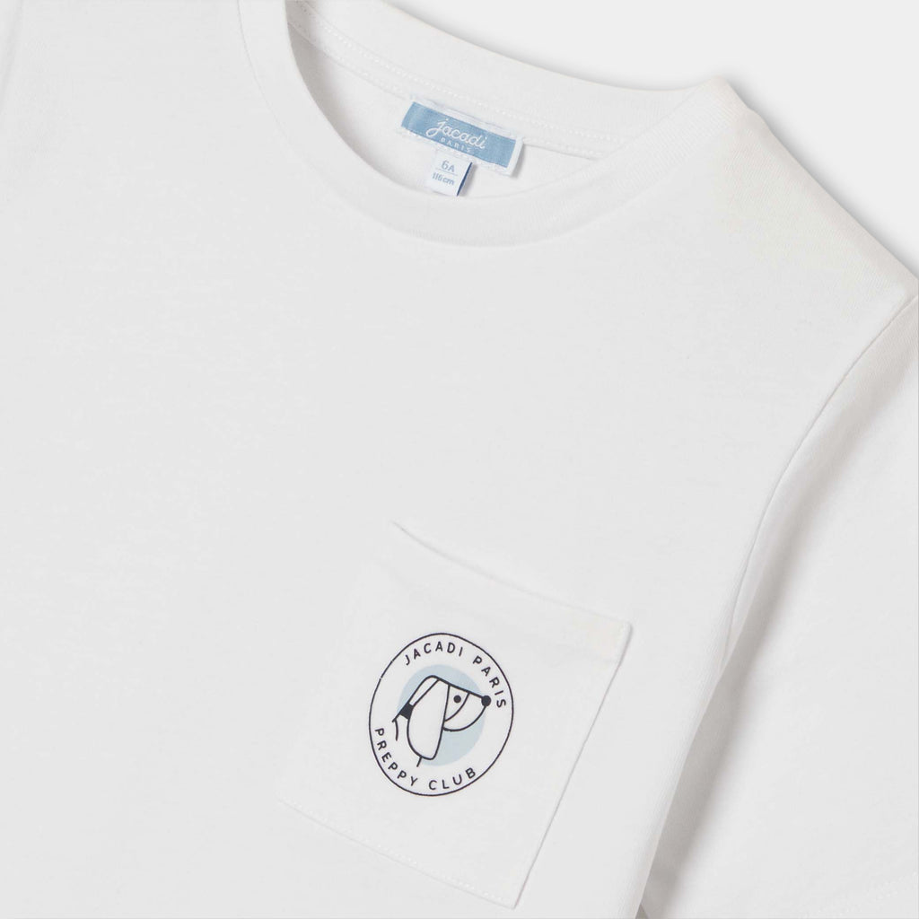 着心地の良さと合わせやすさからワードローブに欠かせない白Tシャツ。柔らかくしなやかなコットンジャージー製です。ジャカディのプリントが施されたフロッキー加工の胸ポケットをあしらいました。上にシャツを羽織ってジーンズと合わせたり、ジップアップスウェットと合わせて都会的なシルエットに仕上げたり、いろいろな着こなしが楽しめます。