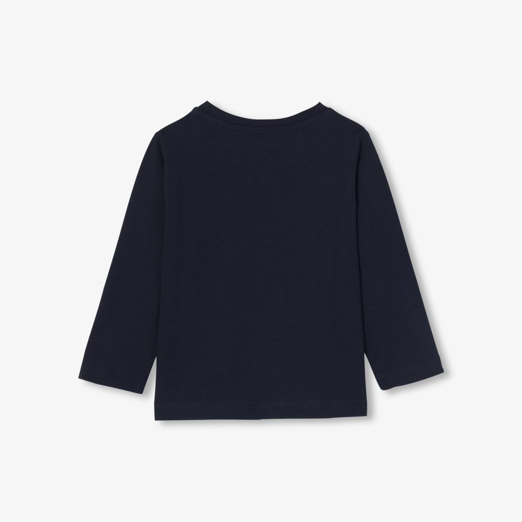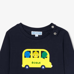 スクールバスがプリントされた、この秋注目の長袖Tシャツ。ソフトでしなやかなオーガニックコットンを使用した、デイリーワードローブの必需品です。肩が開くので着脱も簡単。ジップアップのスウェットとロールアップジーンズに合わせれば、きっとお子さまのお気に入りに。