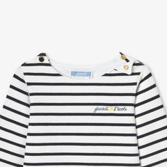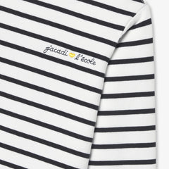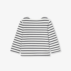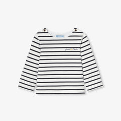 秋の装いにぴったりの、シックカジュアルでアイコニックなセーラーストライプTシャツ。フレンチスタイルの定番アイテムを軽やかなフリース素材で作りました。ワンピースの下に着たり、ジーンズに合わせたり。ワードローブに加えたい万能アイテムです。