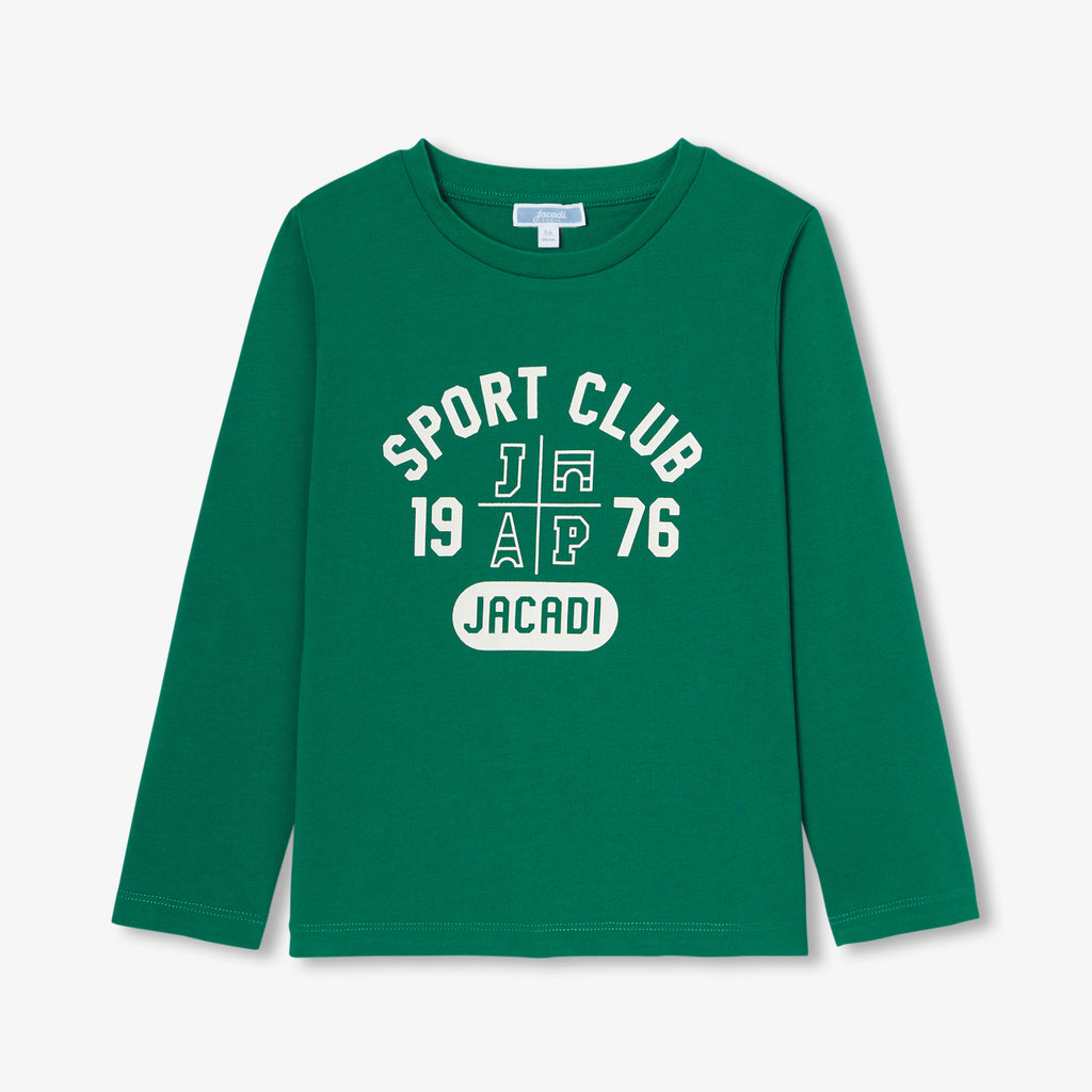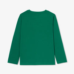 新シーズンのコーディネートにスポーティーなタッチを加える長袖Tシャツ。胸元のアニメプリントがカレッジ風のデザインです。ジップアップスウェットやスウェットパンツと合わせて、通園・通学や外遊びにも大活躍の一枚です。