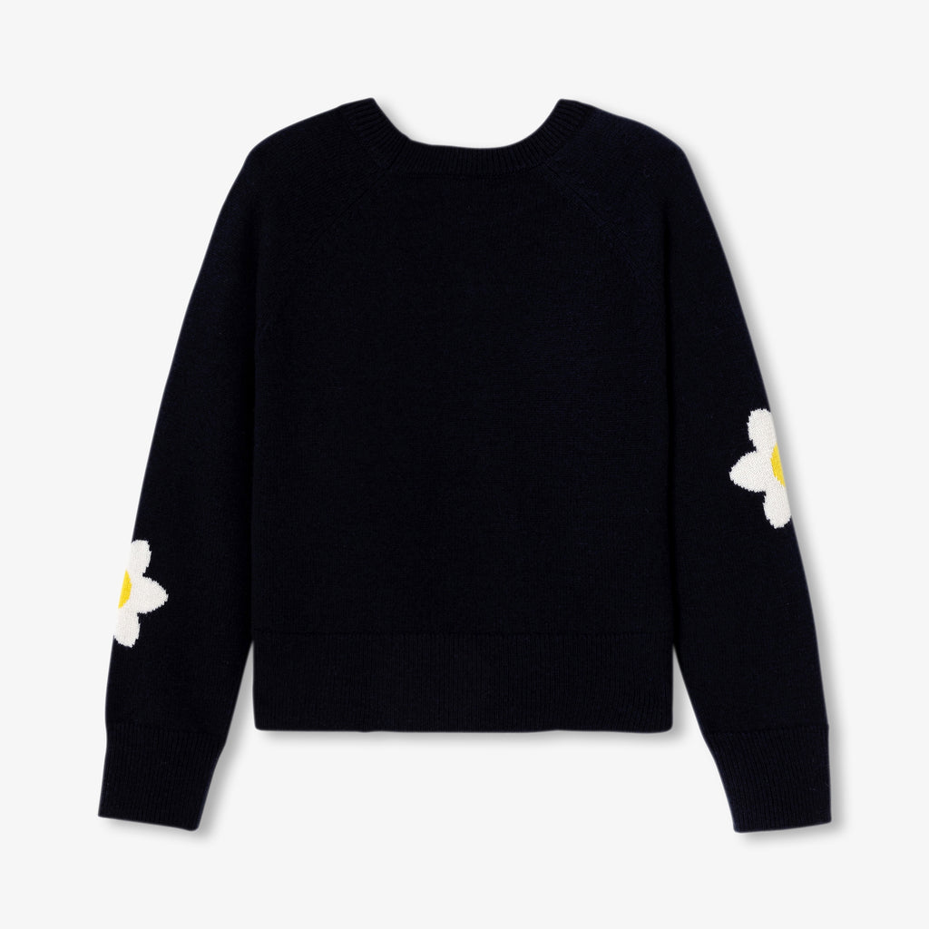 水仙のモチーフをいっぱいにあしらった、プレッピーシックなセーター。モダンなデイリーウェアとして。ウールとカシミヤを使用した一着は、ワイドジーンズとスニーカーでカジュアルに、ベルベットのスカートとアンクルブーツで上品に。秋が終わるまでずっと着られます。