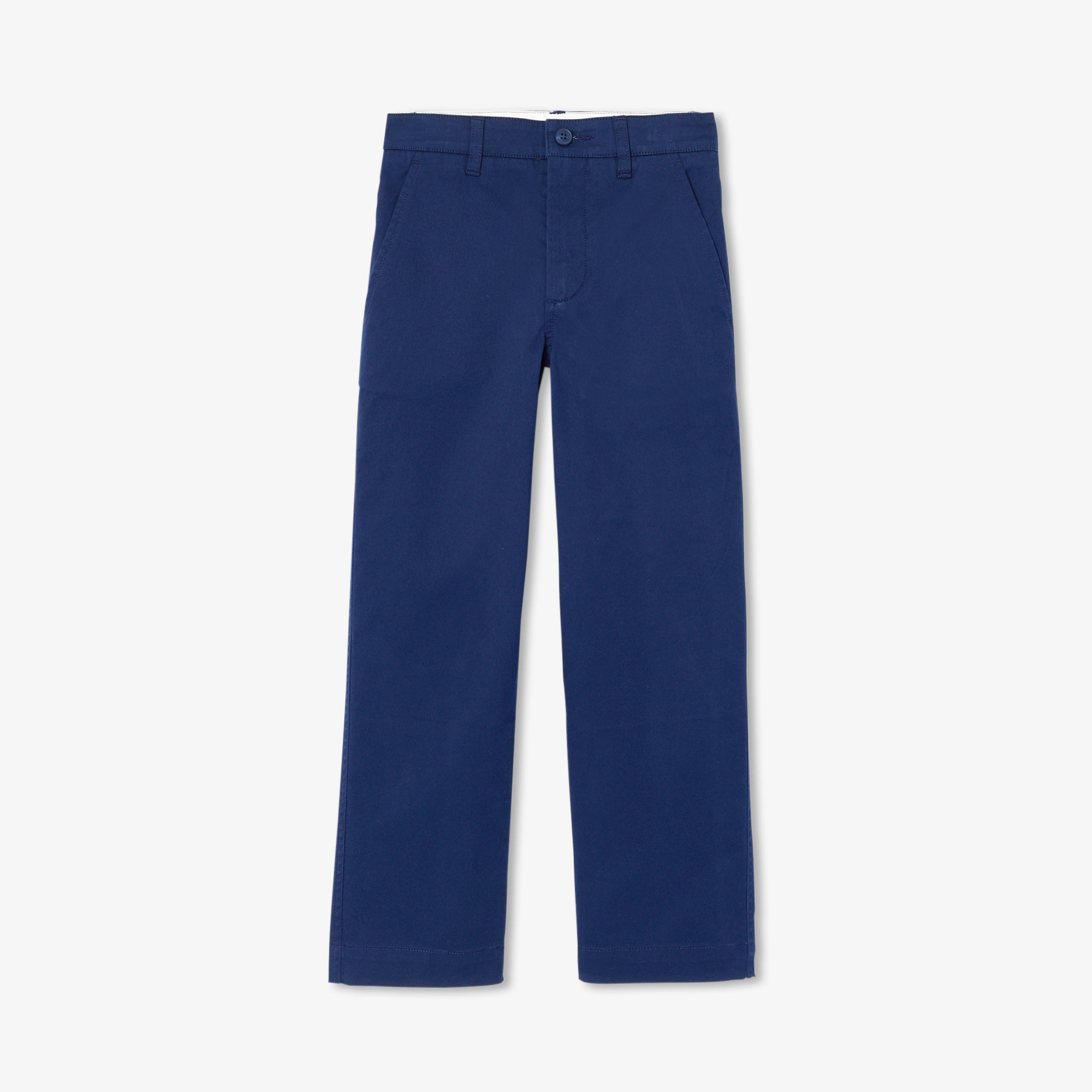 カジュアルシックを演出する、今シーズンのネイビーブルーのチノパンツ。ストレートカットで、軽量ツイル生地にバイオウォッシュ加工を施し柔らかな肌触りに。