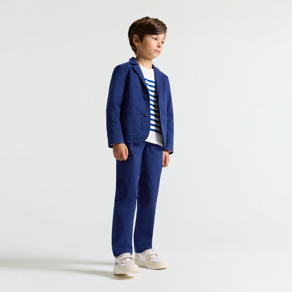 フォーマルに着こなすときにはお揃いのブレザー(別売り)と、モダンなパリ風スタイルにはオーバーシャツと合わせて。