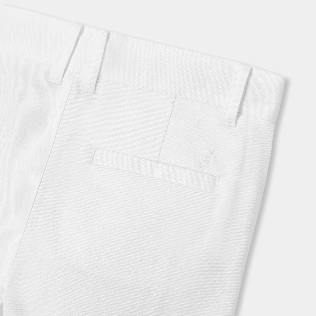 コットンとリネンを使用しており、どんな場面にもぴったりです。特別なイベントにはポロシャツとストライプのジャケットを合わせて。夏にはポロシャツやTシャツと合わせても。