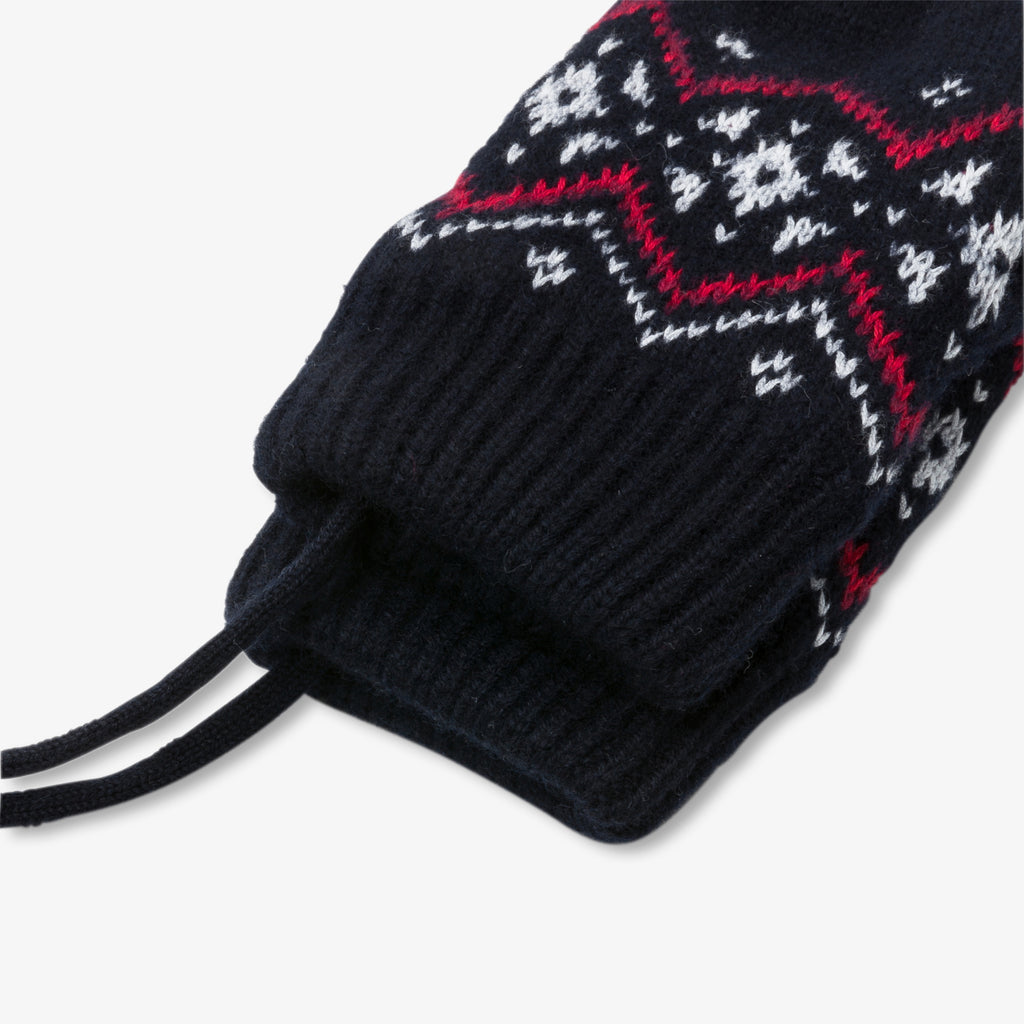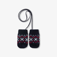 冬の間ずっと、赤ちゃんに寄り添うミトン。ワードローブの必需品です。ウール製で裏地にはマイクロフリースを使用しています。ジャガード織の雪の結晶がエレガント。付け外しも簡単で、小さな手を寒さから守ってくれます。