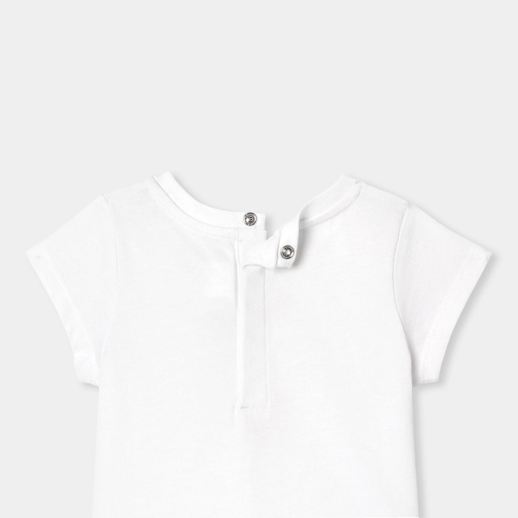 クラシカルな半袖白Tシャツを、ジャカディオリジナルのパターンでおしゃれにアレンジしました。ソフトで軽量なコットン製。背中のスナップボタンが特徴です。ショートパンツやジーンズを合わせて、デイリーに。