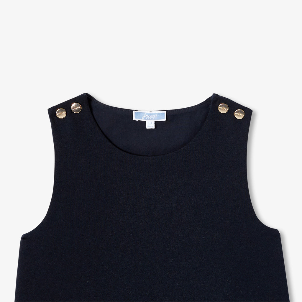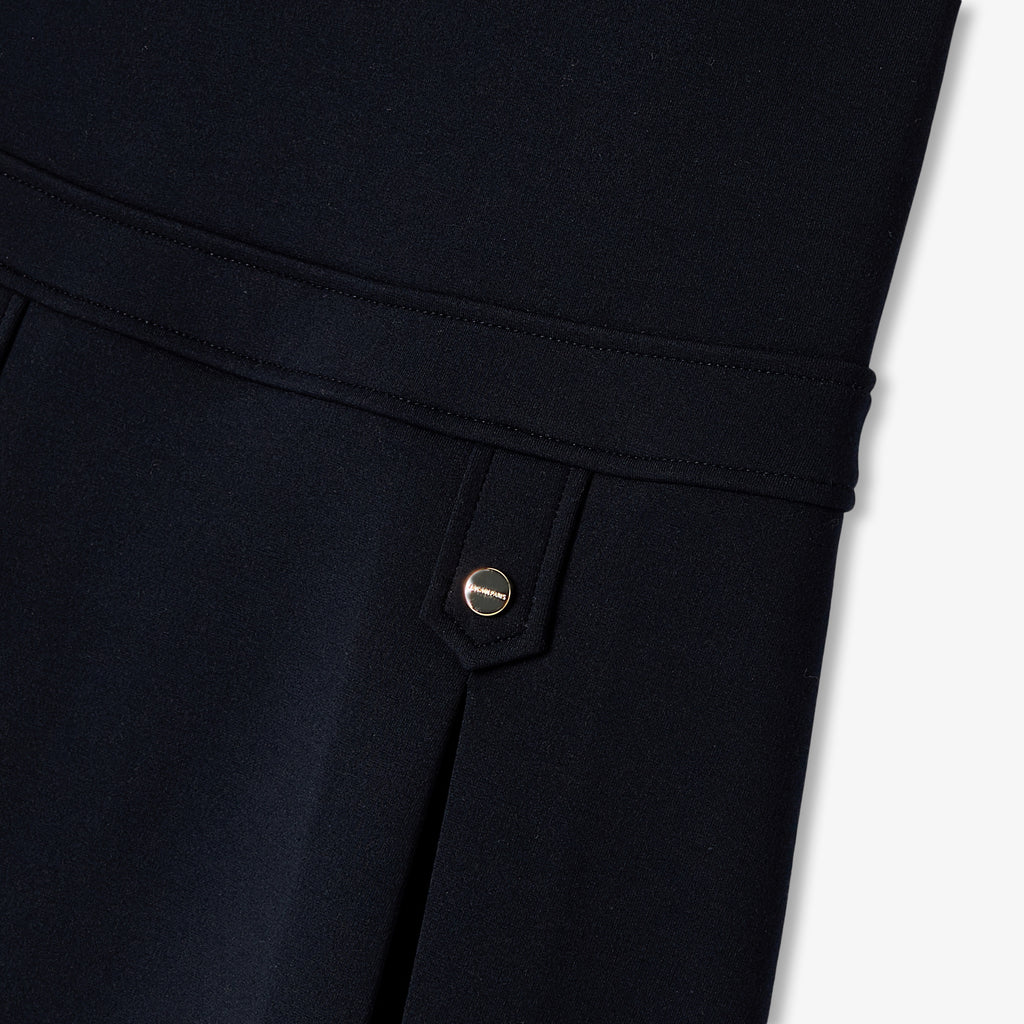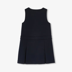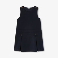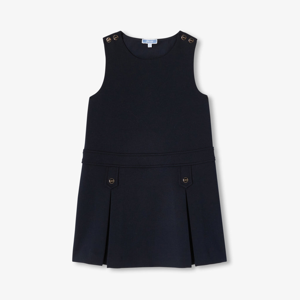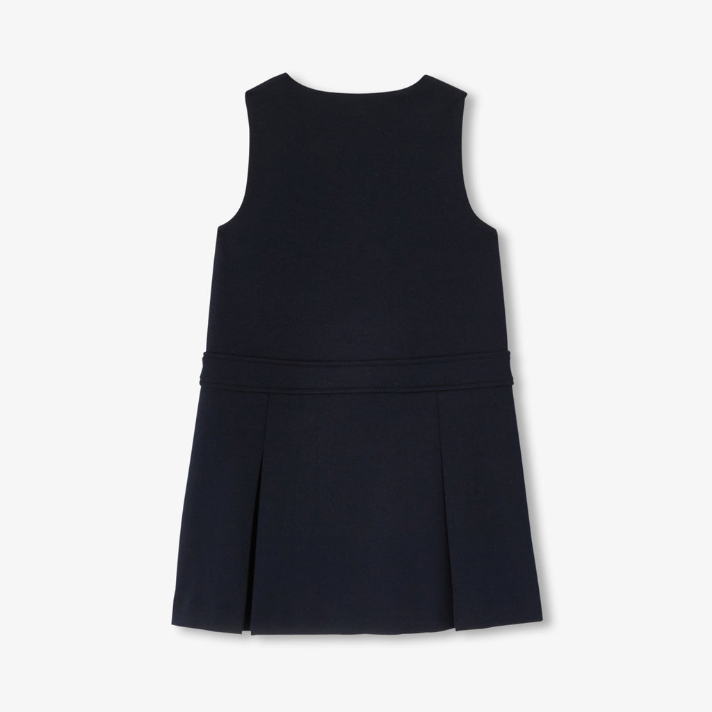 クチュールのエスプリと洗練されたスタイルが息づく60年代風ワンピース。柔らかで着心地の良いミラノニットに、切り替えのウエスト、ボックスプリーツ、ゴールドのボタンをあしらいました。襟付きTシャツの上に羽織れば、パリシックなシルエットが完成します。
