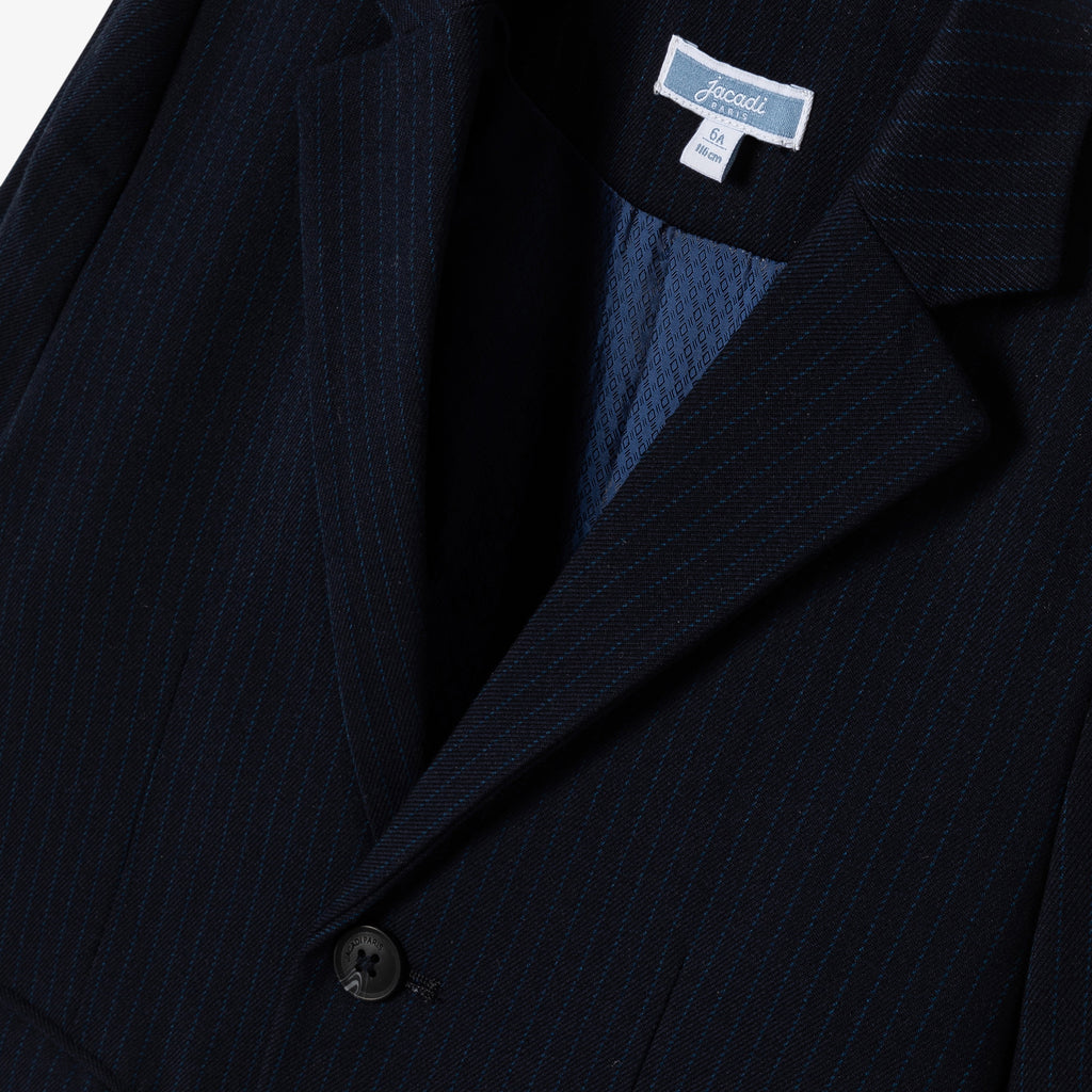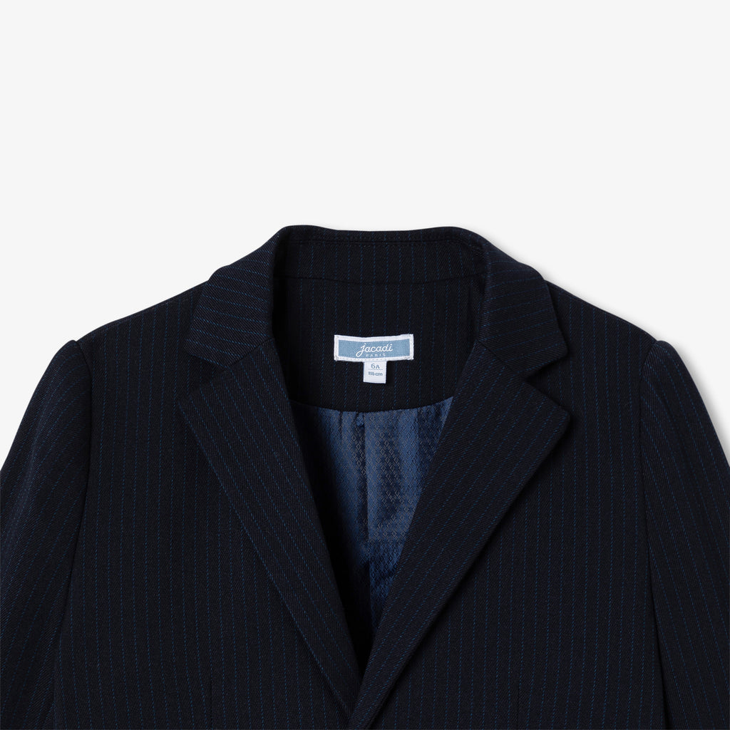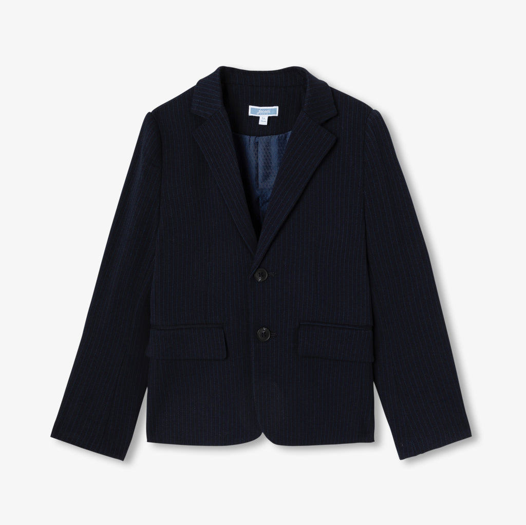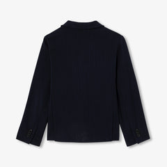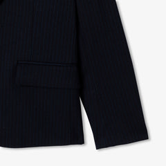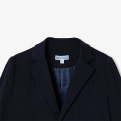 小さなお子さまがお兄さんたちのようにスタイリッシュに決まるジャケット。無地風仕上げのストライプ柄フランネル調生地を使用し、モダンなシルエットに仕上げました。サテンの裏地付き。流れるようなシルエットで、あらゆるお誘いに対応できます。Tシャツとジーンズに合わせればプレッピーシックな雰囲気に。お揃いのパンツ(別売り)とシャツを合わせればホリデーシーズンにぴったりです。