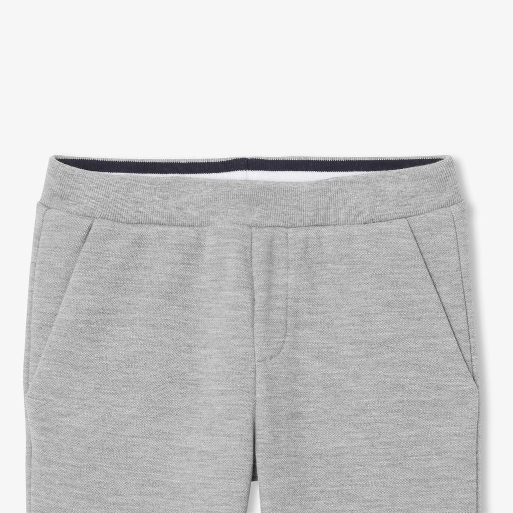 柔らかいベロア調生地の裏地が付いたピケフリース素材のスウェットパンツ。テーパードカットがモダンです。伸縮性のあるウエストゴムと、足首にフィットする裾のリブが特徴です。ポケットとウエスト内側のストライプのリブが、お揃いのジップアップスウェット(別売り)にぴったりです。