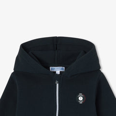 ジャカディのワードローブに裏起毛パーカーが仲間入り。カジュアルなスタイルを現代的に再解釈したアイテムです。ミッドシーズンのジャケットとして着られます。ラップアラウンドフード、パッチポケット、刺しゅうバッジ付き。日常の装いをスタイリッシュで実用的に暖かく演出するのに最適な、ジップアップカーディガンです。