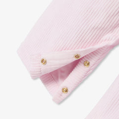毎日の強い味方、サロペット。赤ちゃんのワードローブに欠かせない一着です。冬仕様のコーデュロイ生地は、柔らかなパウダーピンクカラーでモダンに仕上げました。ストラップと股下のスナップボタンで、Tシャツやボディスーツの上から簡単に着脱でき、保育園でもご家庭でも、幅広く活躍します。