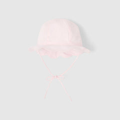 スカラップ縁が可愛らしいコットンハット。太陽の日差しからお子さまを守ります。シンプルなデザインでお洋服に合わせやすいアイテムです。