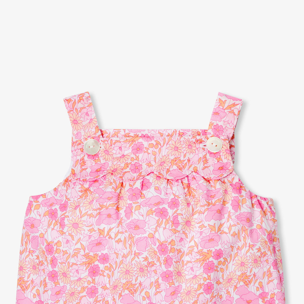 赤ちゃんを魅惑的なフラワーの世界へと誘う、シックでタイムレスなリバティプリント(花柄)のサロペット。柔らかでしなやかなニット裏地を施した着心地の良いモデルで、通園にもデイリーユースにもぴったり。スカラップのあしらいが可愛らしく、ボタン留めのストラップと股下のスナップボタンで開閉でき、着脱も簡単。ボディスーツとも合わせやすい、ご自宅用にも、新シーズンのギフトにもおすすめのアイテムです。