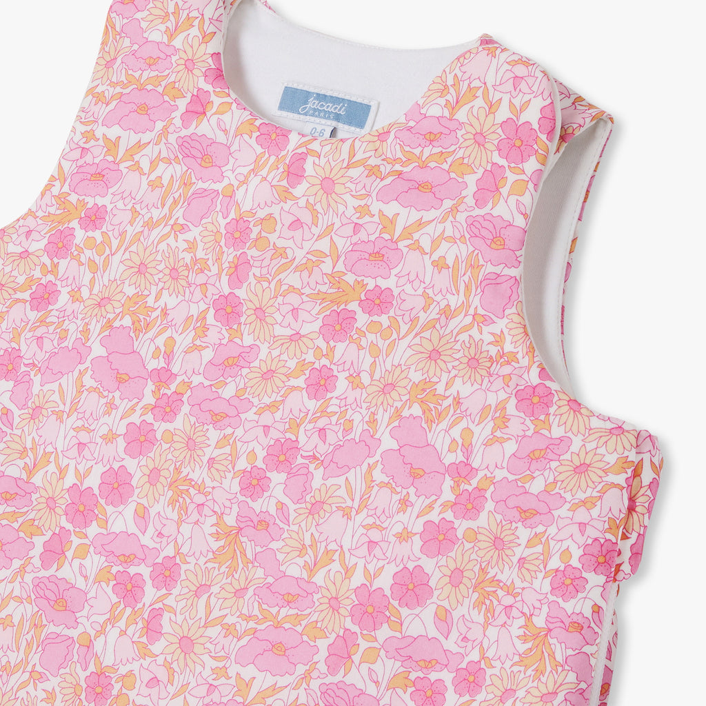 Jacadi独自のカラーリングを施した特別なリバティ生地(Poppy & Daisy)を使用し、可憐な花々が咲き誇る詩的なデザインに仕上げました。