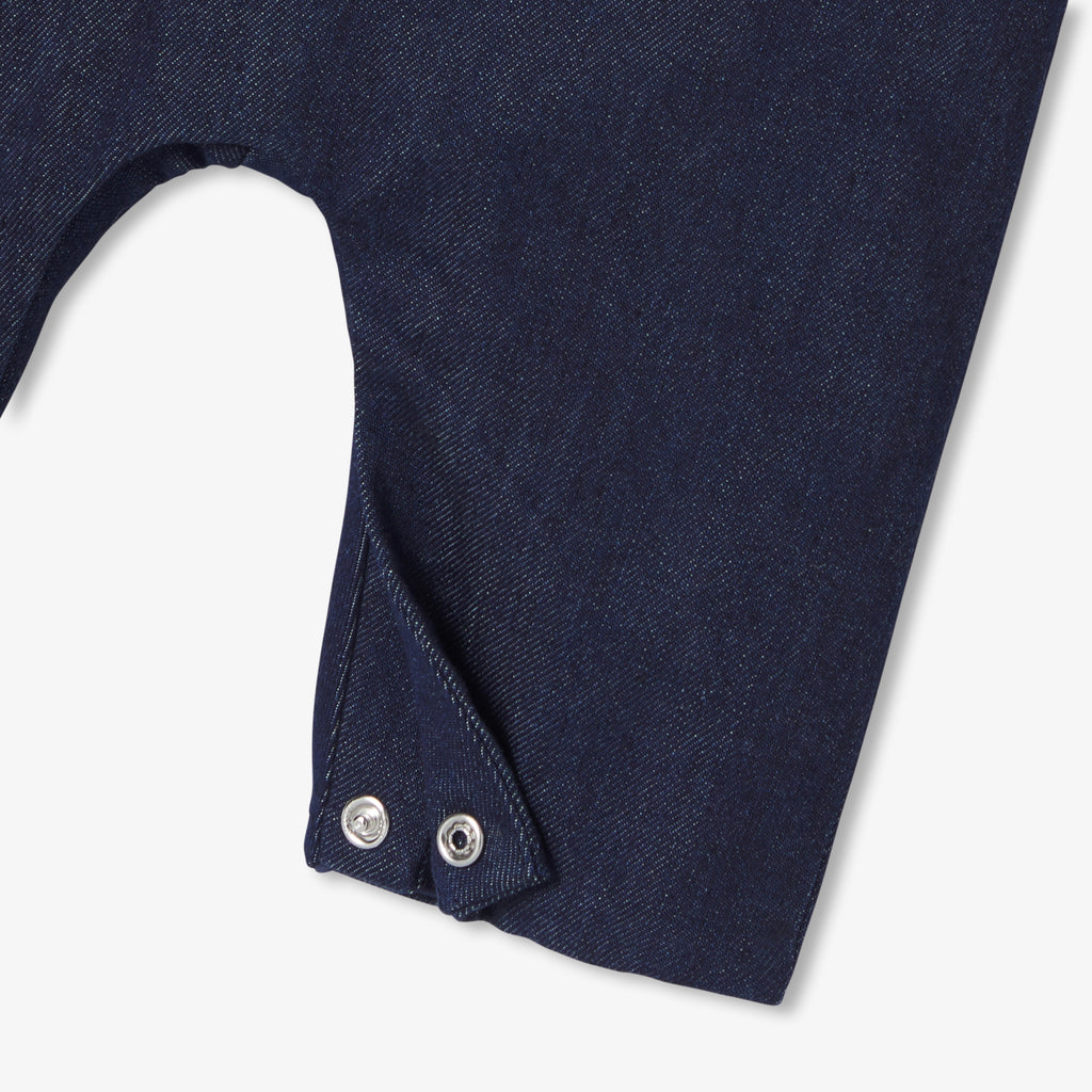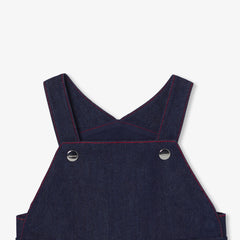 毎日のワードローブの定番であるサロペットをローデニムでリデザイン。伸縮性のある素材にニット裏地を施すことでカバー力と着心地の良さを実現。コントラストの効いたステッチと目立ちにくい股下のスナップボタンがモダンなスタイルを演出しています。ストライプのボディスーツと赤のカーディガンを合わせれば、リラックス感のある都会的なスタイルの完成です。