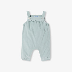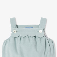 秋冬のワードローブに加えたくなる、優しげで落ち着きのある色合いが魅力のサロペット。柔らかなベロア調生地にニット裏地を施したデイリーユース向けの一着です。スカラップをあしらったデザインが可愛らしく、ストラップと股下のスナップボタンで開閉でき、着脱も簡単。シックでリラックス感があり、ピンクのボディスーツやカーディガンと合わせればモダンなシルエットが完成します。