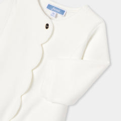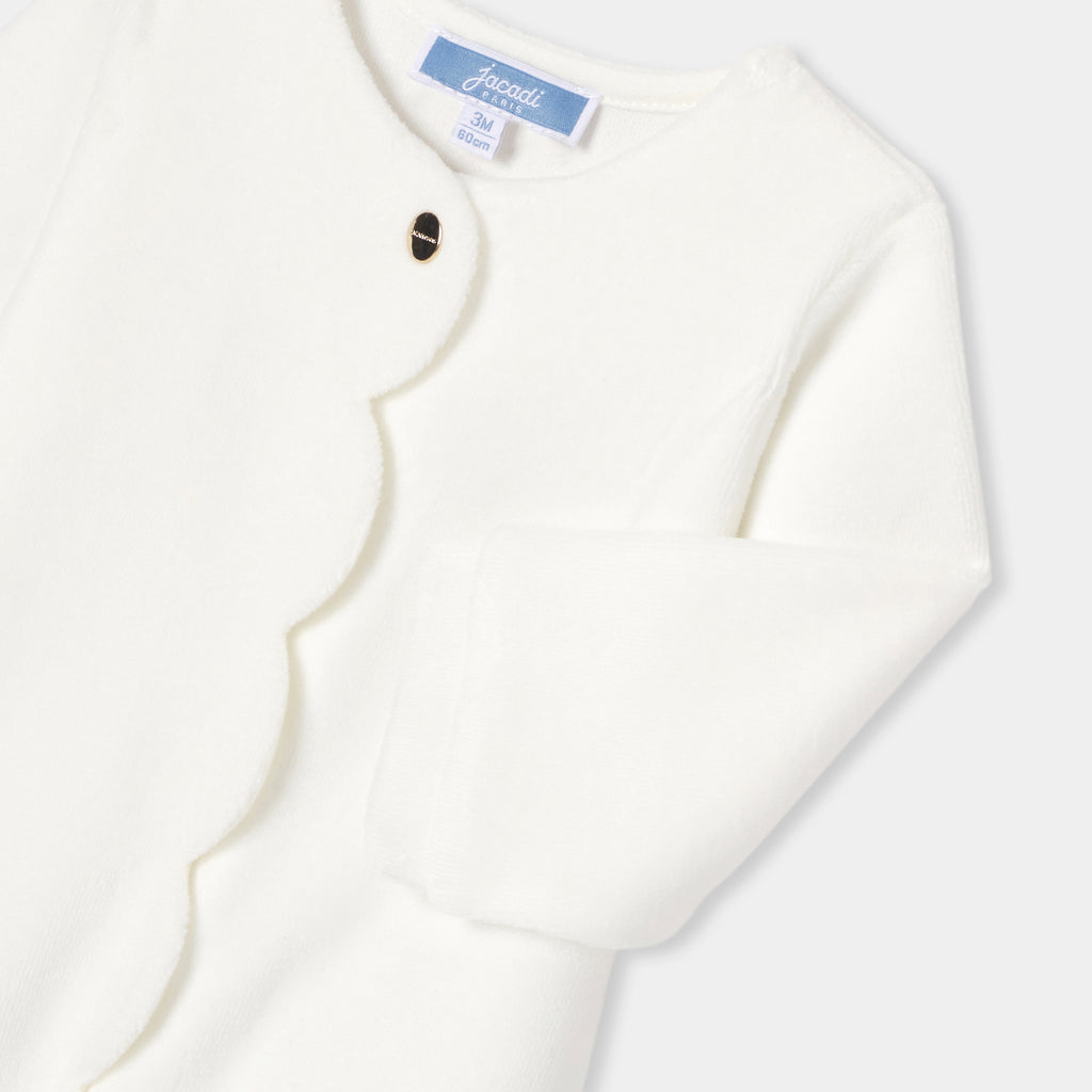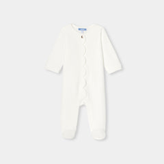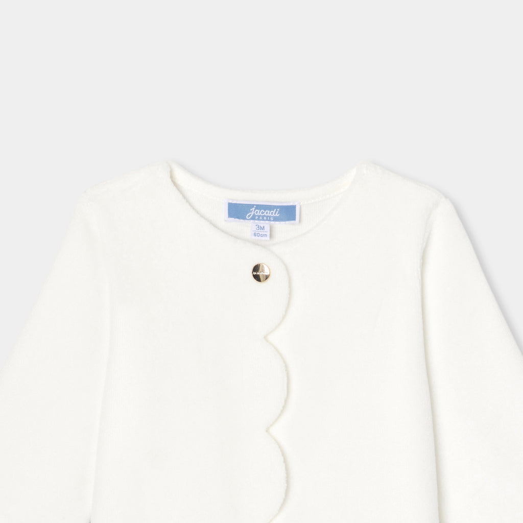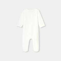 ジャカディのアイコニックな足つきロンパース・パジャマ。柔らかで肌触りの良いベロア調生地を使用したシックでミニマルな一着。正面のスナップボタン開閉で着脱も簡単。赤ちゃんのファーストセットに選んでみて。