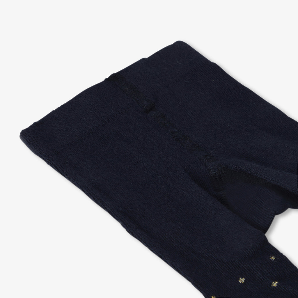 小さなゴールドドット(水玉模様)が印象的なタイツ。日常のシルエットやホリデーの装いにさりげない輝きを添えてくれます。柔らかで履きやすく、赤ちゃんのワードローブにおすすめです。
