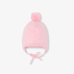 赤ちゃんを冬の寒さから守る、かぶり心地の良いニット帽。柔らかなマイクロフリース裏地、シャプカ帽子風の耳当て、小さなポンポンが魅力的です。元気いっぱいの色合いで、街中でも山でも、赤ちゃんに寄り添います。