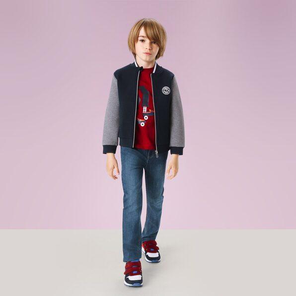 柔らかな素材のストレートフィットジーンズはコーディネートのマストアイテム。履きやすく、スウェットやジャケットに合わせてお友達とのお出掛けにもぴったり。