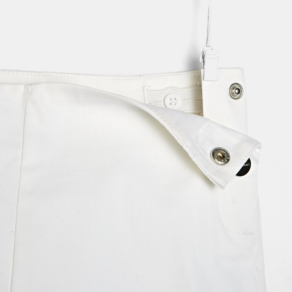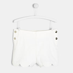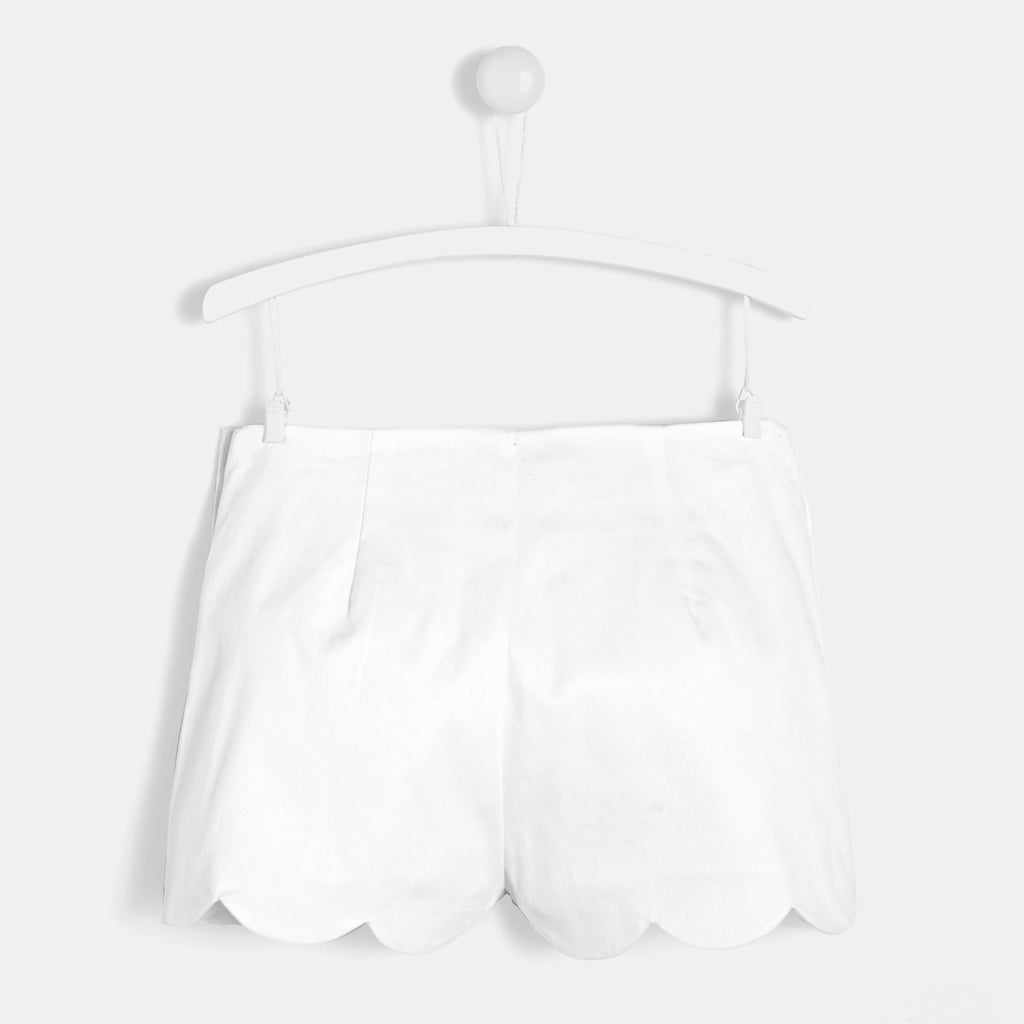 コットンピケのショートパンツで海辺へ出発。上品なスカラップ裾は桟橋でも公園でも、どんな外出にもぴったり。調整可能なゴムウエストとスナップボタン付きで履きやすく、シンプルなデザインでコーディネートしやすいパンツです。