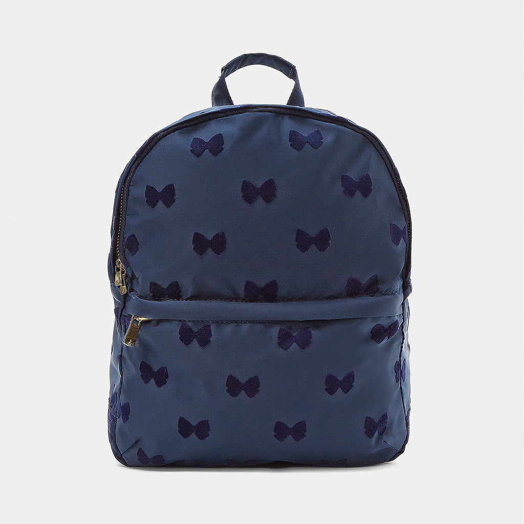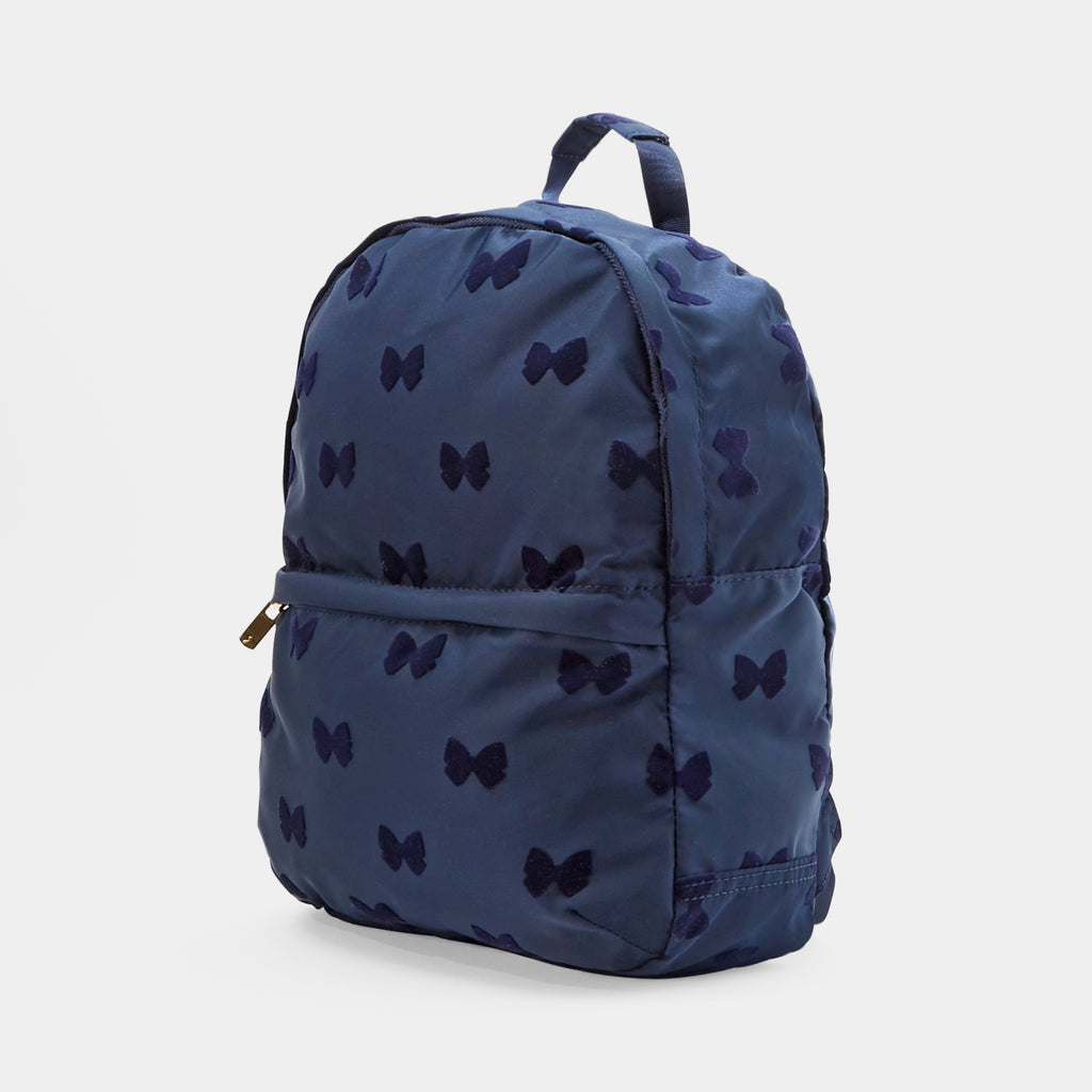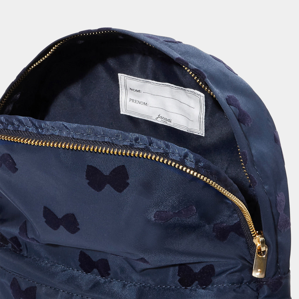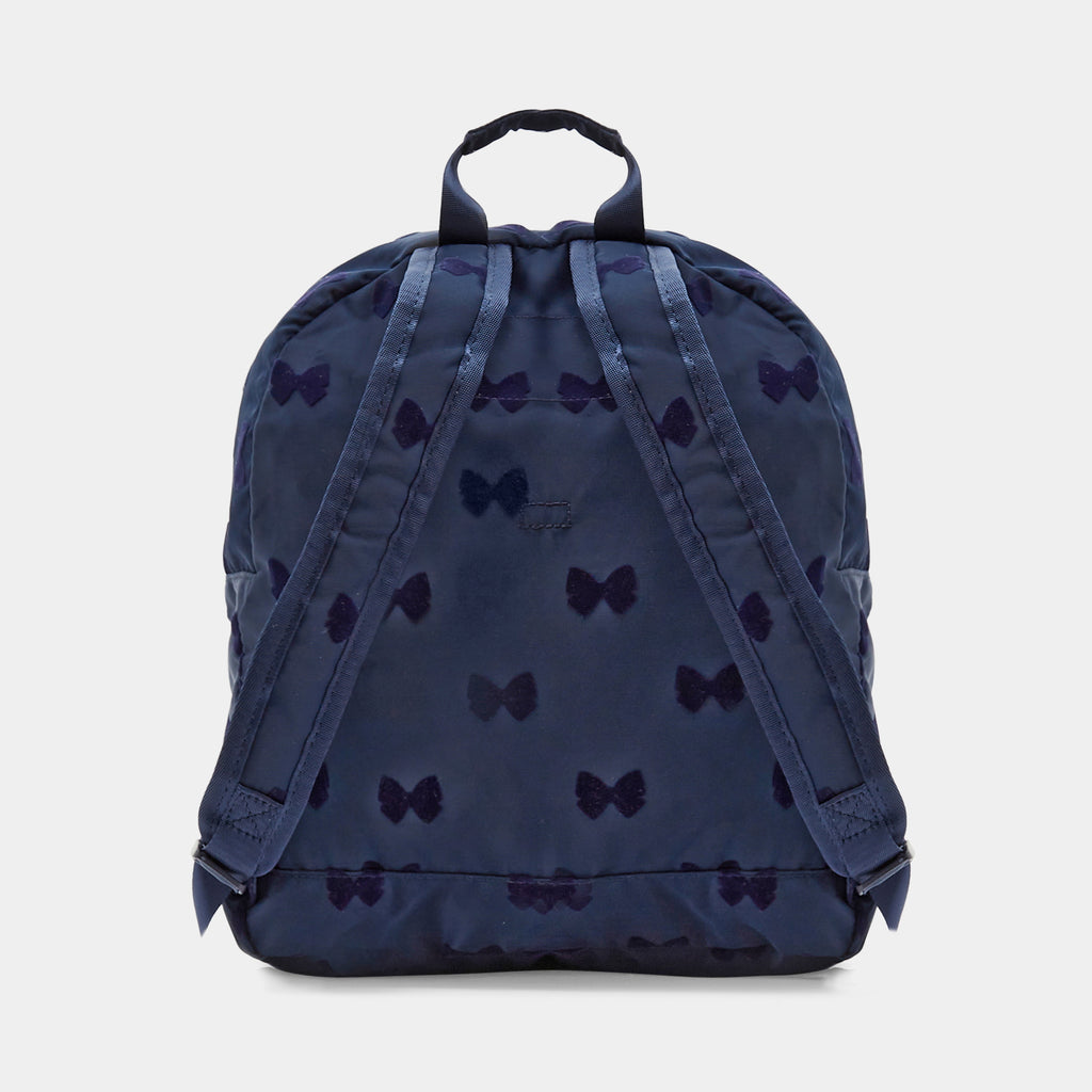 可愛らしいリボンが散りばめられた通園・通学にぴったりの上品なリュック。大きく開くファスナー開閉で出し入れも簡単。