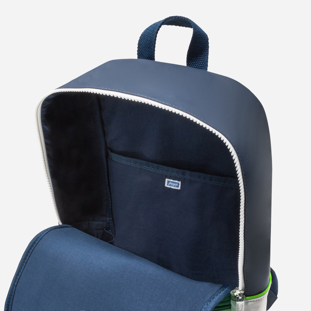 新しいジャカディのリュックが登場!カラーブロックデザインにJacadiロゴが刺繍され、ノートをしまえる大きなジップポケットと小物をしまえる小さなジップポケットが前面に付いています。サイドが補強された持ち手が快適な背負い心地で、ご家族でのお出かけにもおすすめです。