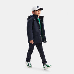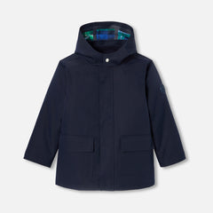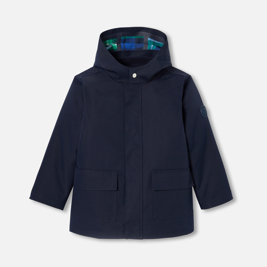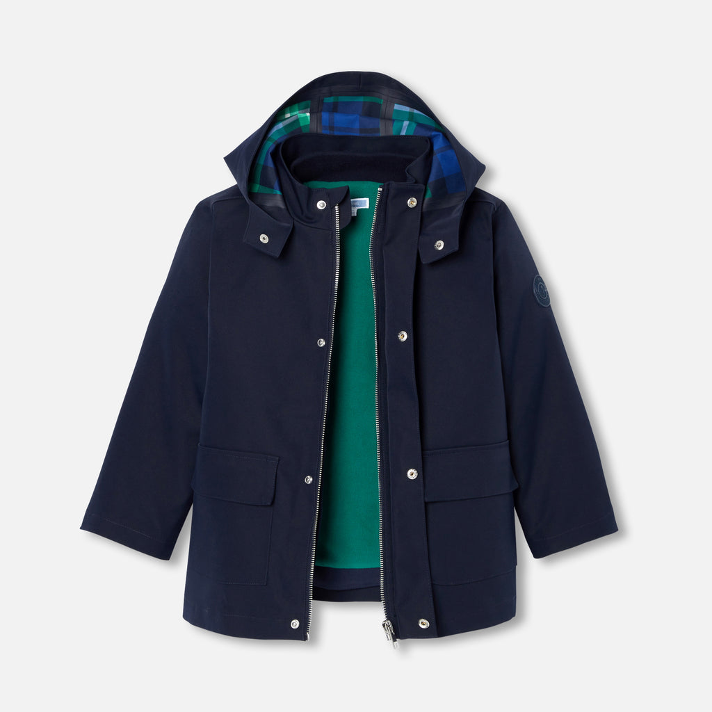 シックで実用的なスポーツスタイルのウィンドブレーカー。撥水素材を使用した機能性の高い3wayモデルで、秋から冬まで着ていただけます。ツイル生地にタータンチェックの裏地を施し、マイクロフリースの裏地付きの取り外し可能なジャケットがセットになっています。雨風に強く、あらゆるシーンで活躍すること間違いなし。通学・通園のワードローブに加えてみて。