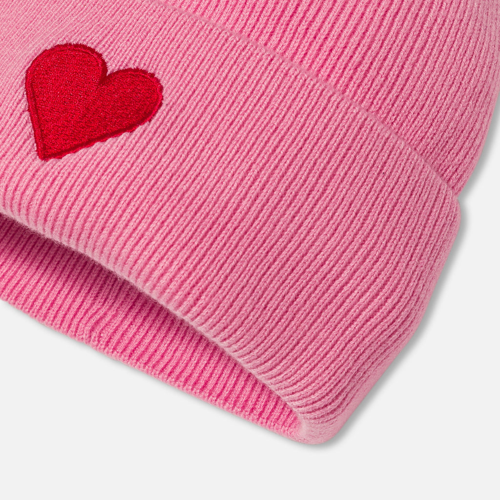 お子さまの心を掴む、エレガントでモダンなニット帽。レスポンシブルウールを使用した暖かなモデルで、折り返しのハートの刺繍が目を惹きます。