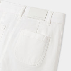 今シーズンのコーディネートに欠かせない、60年代風のダブルボタン付きワイドパンツ。伸縮性のあるコットンツイル製で、正面と背面の丸みを帯びたパッチポケットが魅力的。スウェットとスニーカーを合わせれば、フレンチテイストたっぷりのシックでカジュアルなシルエットが完成します。